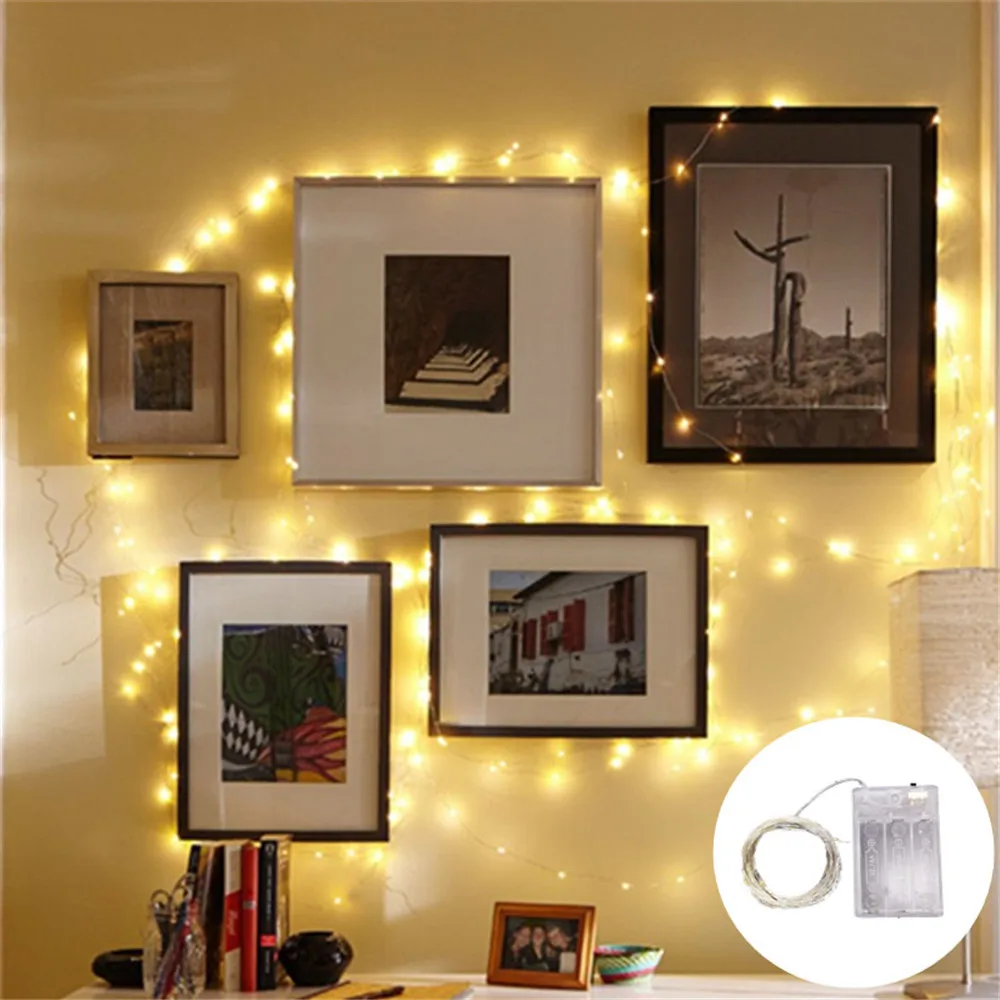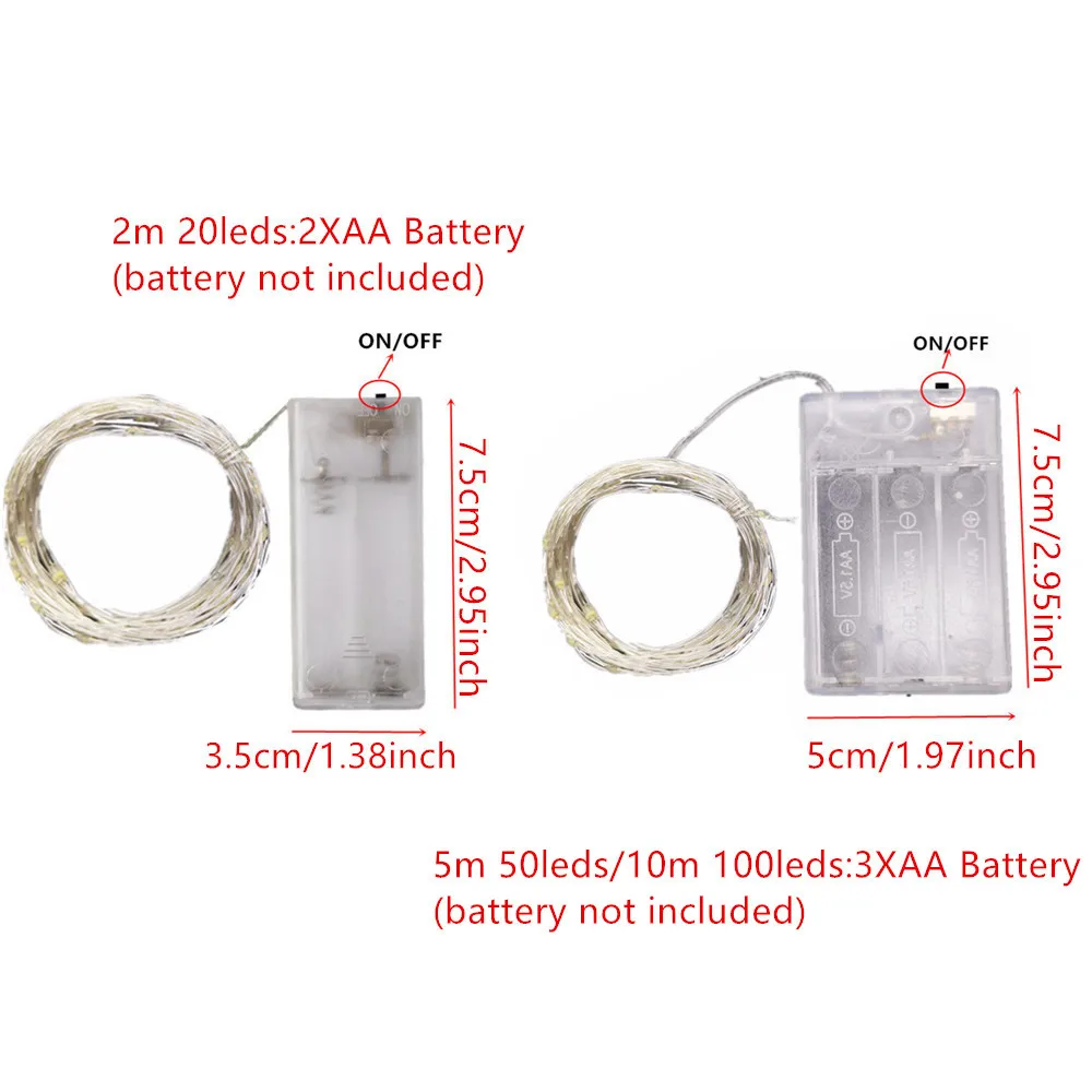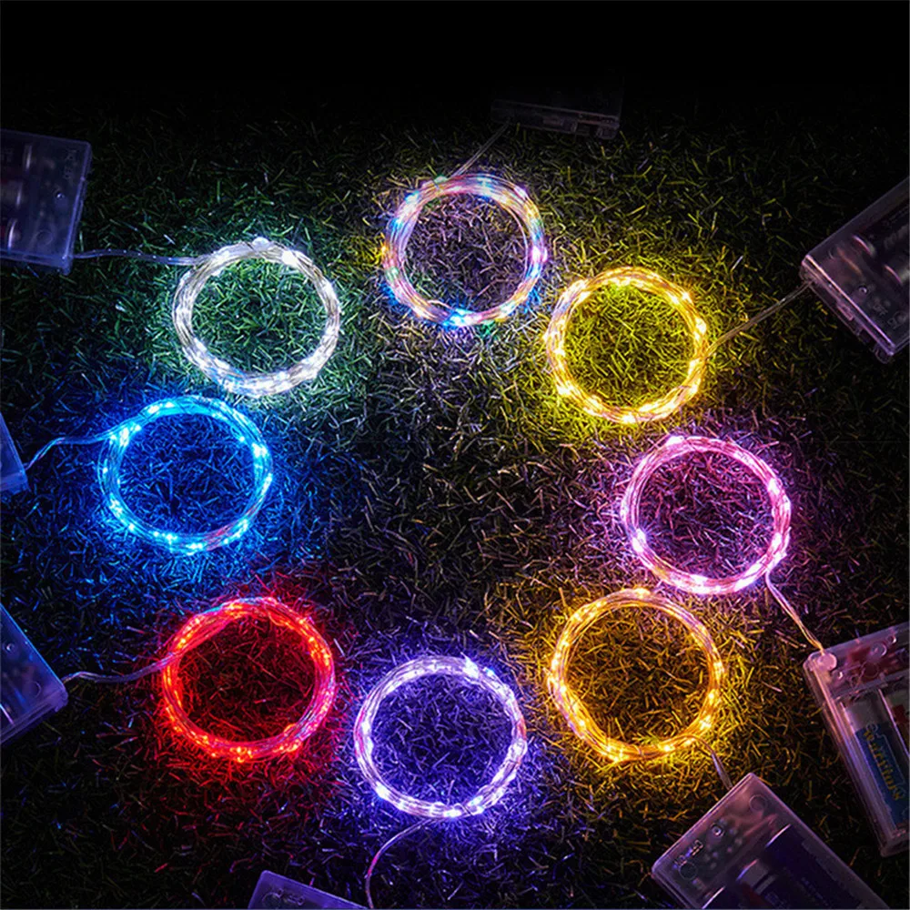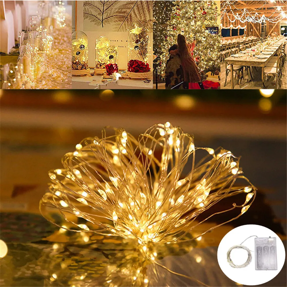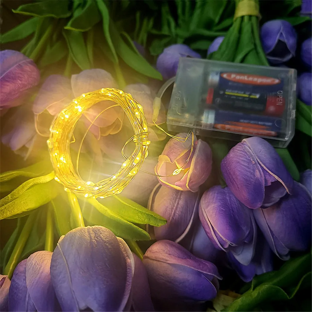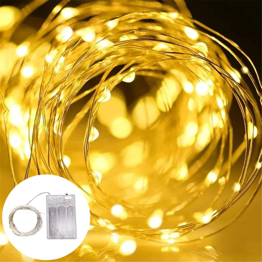 Fio de cobre LED String Light, Fairy Light, Alimentado por pilhas, Quarto, Jardim, Festa, Decoração de casamento, 1 m, 2 m, 3 m, 5 m, 10m, 1 pacote