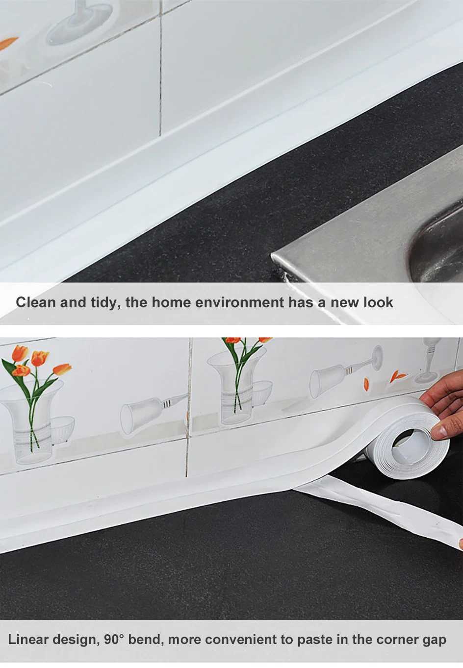 2.The bathroom sealing tape is suitable for any flat and smooth surface such as tiles, marble, glass, painted wood etc. The area to be used must be dry and the adhesive strip can be pressed onto the surface within minutes.