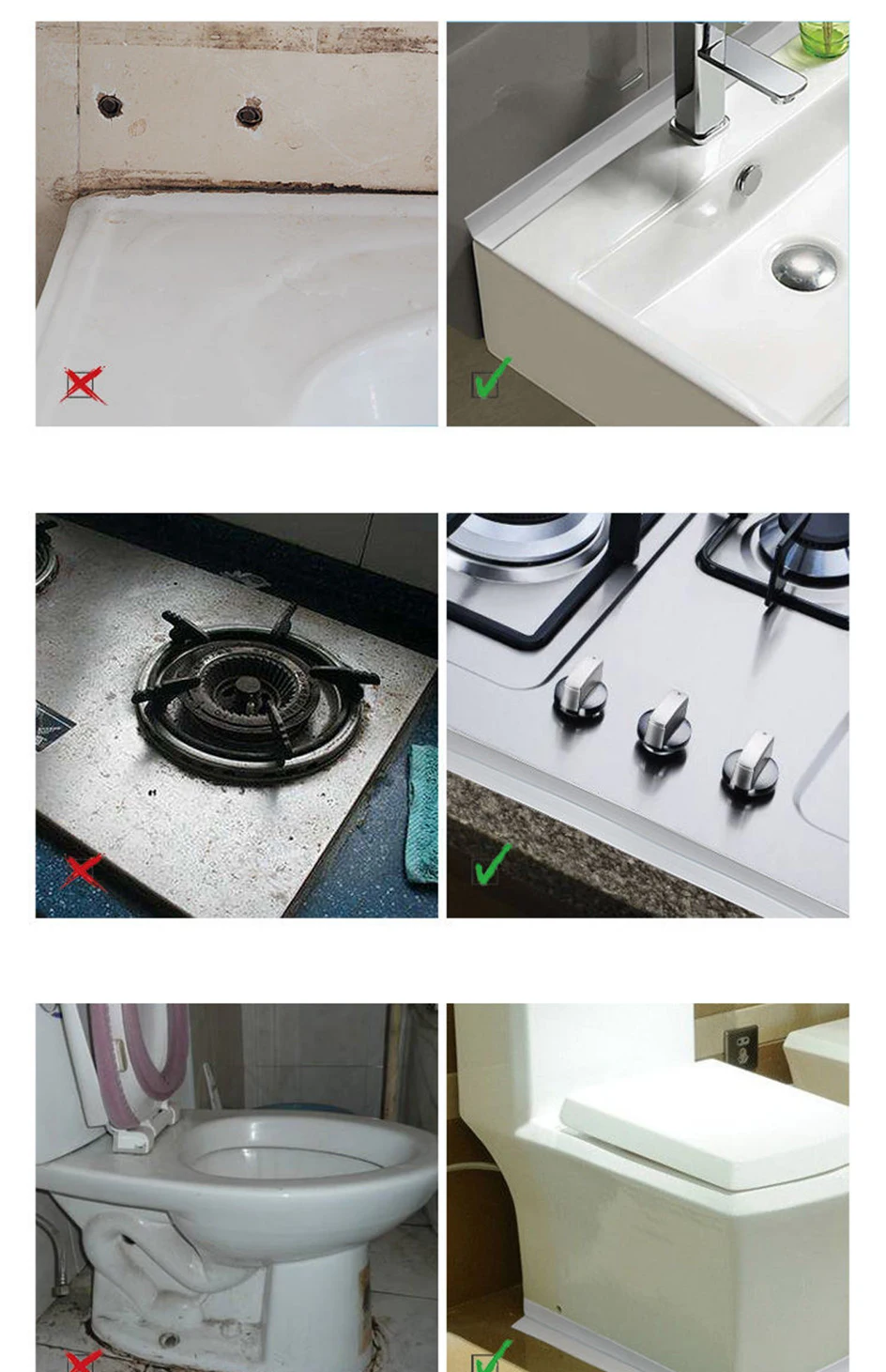 4.It is a necessity in everyday life. For baths, sinks, toilets, cookers and walls, it prevents them from turning black and gives you a clean, bright and tidy kitchen and bathroom.