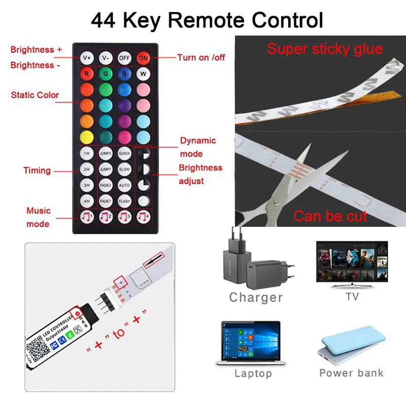 1. Controle de 3 teclas:Apenas 3 botões no cabo USB podem controlar a faixa de luz.