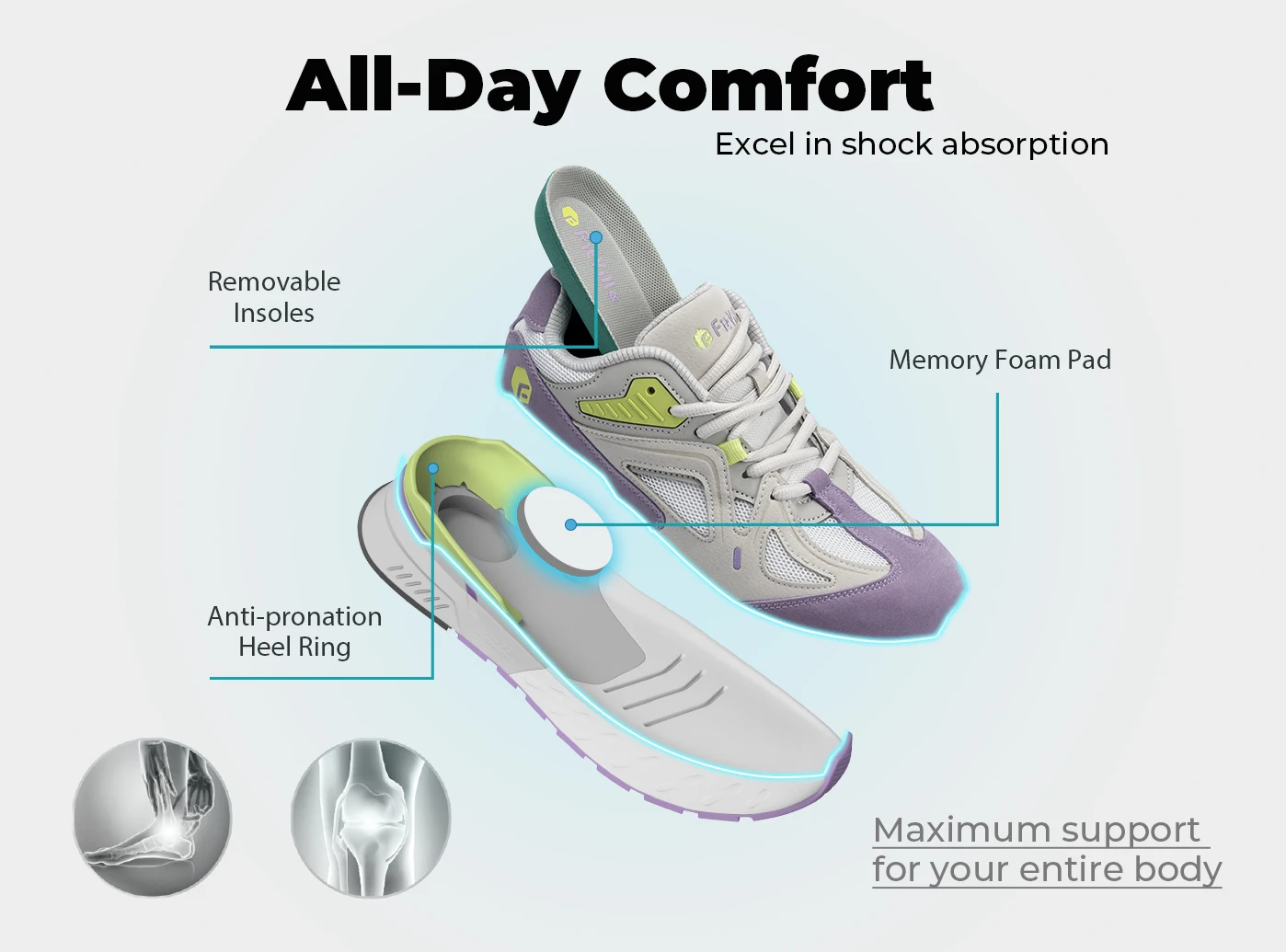 5.Wide-Toe-box & High-Instep Design : Especially for wide-footer and people suffering from foot problems like plantar fasciitis, flat feet, bunions and hammertoes.