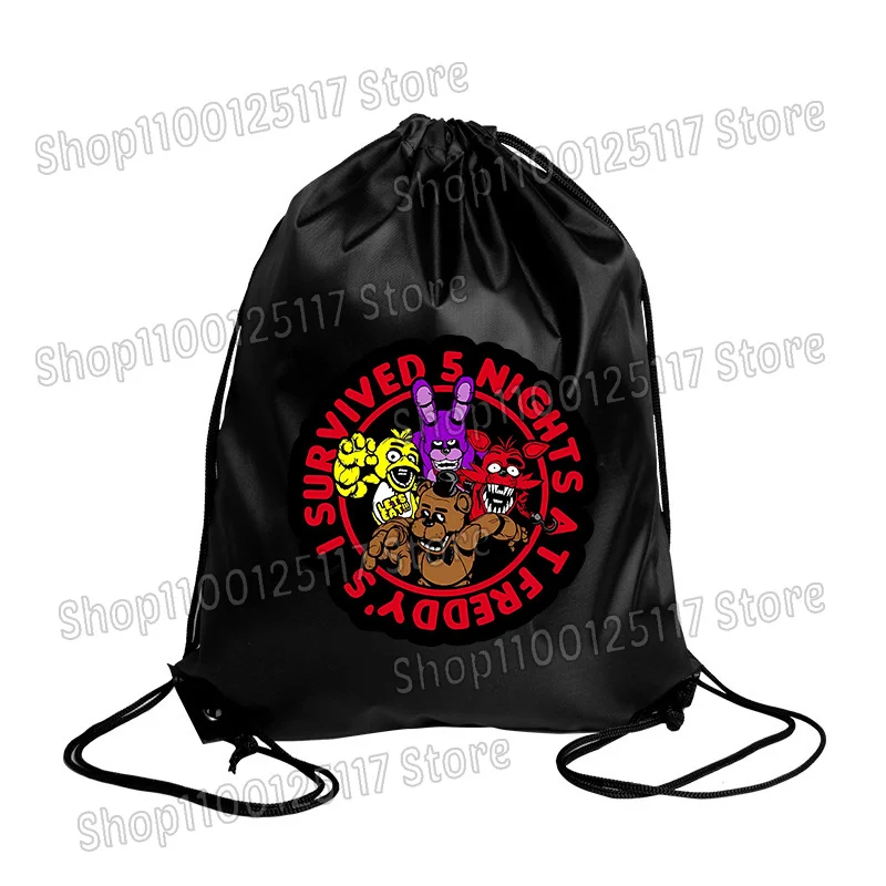 - > Fnafs sacos de cordão cinco noites freddys festa presente pacote à prova dwaterproof água saco de armazenamento de poliéster legal viagem ao ar livre mochila portátil