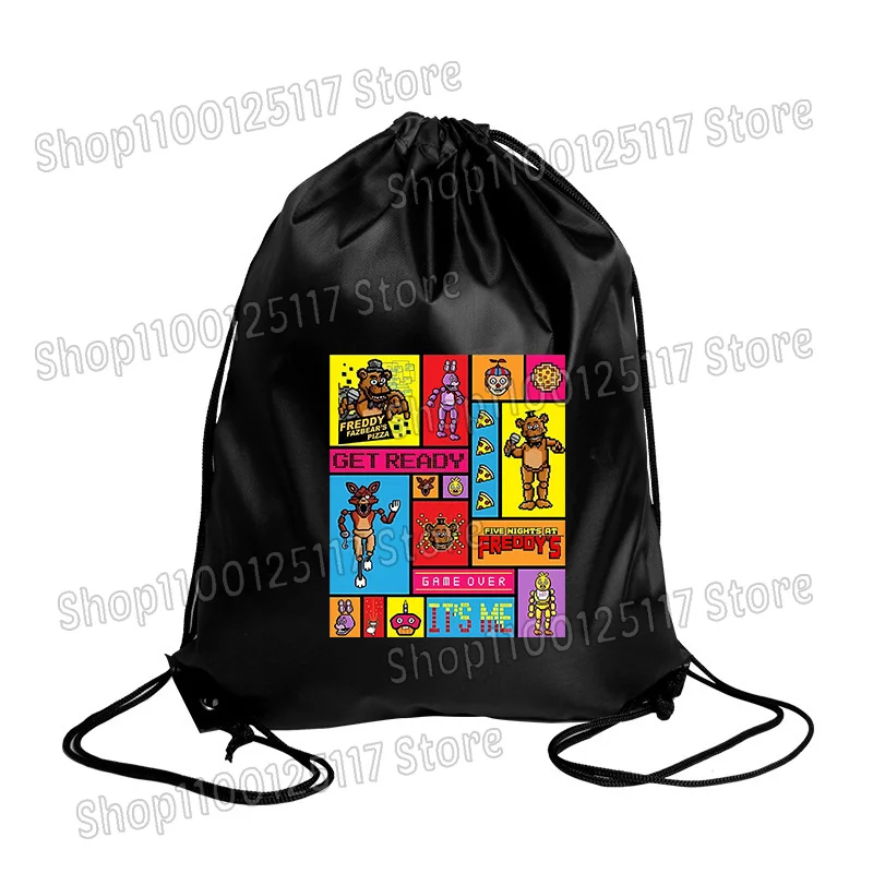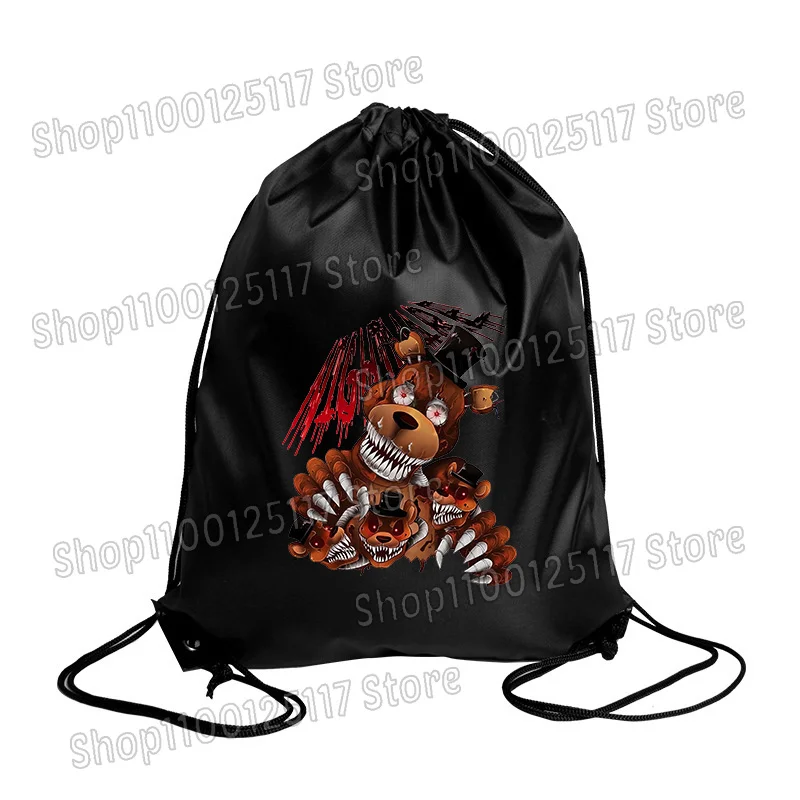 Fnafs sacos de cordão cinco noites freddys festa presente pacote à prova dwaterproof água saco de armazenamento de poliéster legal viagem ao ar livre mochila portátil