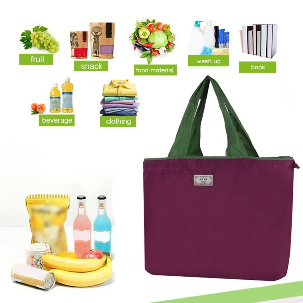 3.Pronto para usar Esta sacola de compras dobra-se para que seja fácil de colocar no console do carro ou simplesmente colocar na bolsa, no bolso do casaco e, em seguida, se você decidir fazer compras ou fazer uma viagem de compras não planejada.