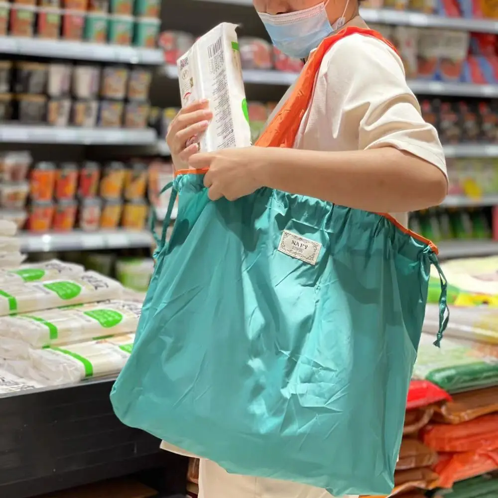 - > Foldable Shopping Bag com Cordão, Eco-Friendly, Moda Supermercado, Reutilizável, Impermeável, Viagem, Mercearia