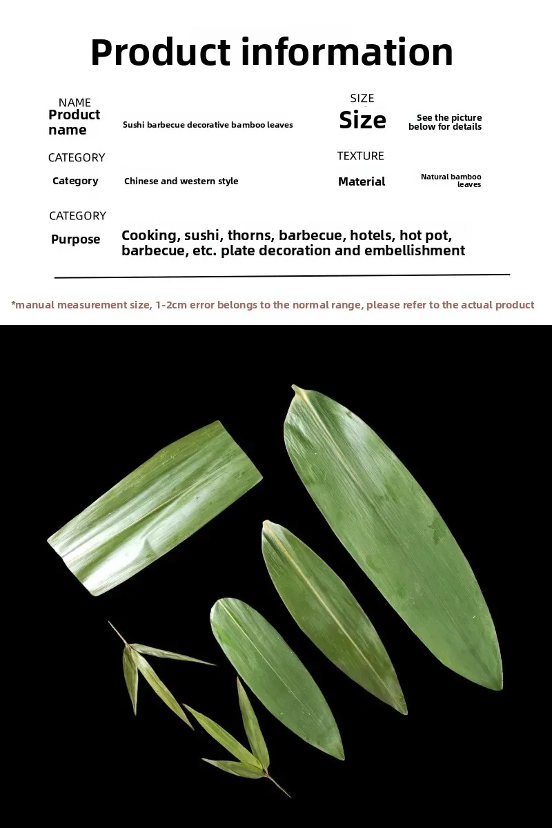 • Peça Decorativa Versátil:Não apenas para alimentação, essas folhas de bambu servem como decoração criativa para a sua casa, acrescentando um toque de natureza a qualquer ambiente.