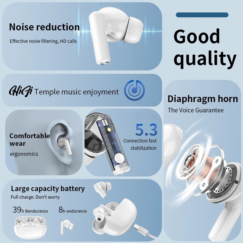 - > Fone de ouvido sem fio Bluetooth TWS com microfone estéreo esportivo fone de ouvido intra-auricular toque longa espera para todos os smartphones