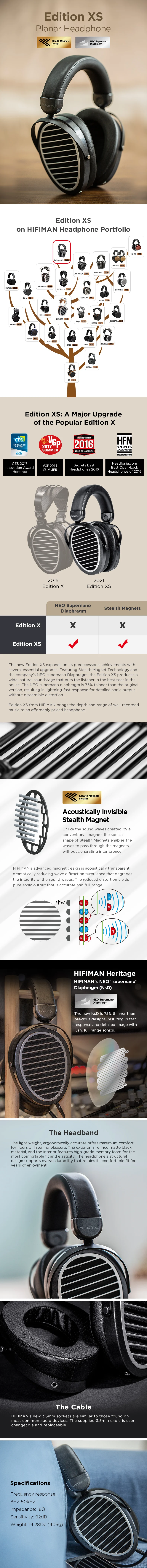 - > Fones de Ouvido Hi-Fi HIFIMAN Edition XS de Tamanho Completo, Over-Ear, Open-Back, com Design de Ímãs Ocultos e Haste Ajustável