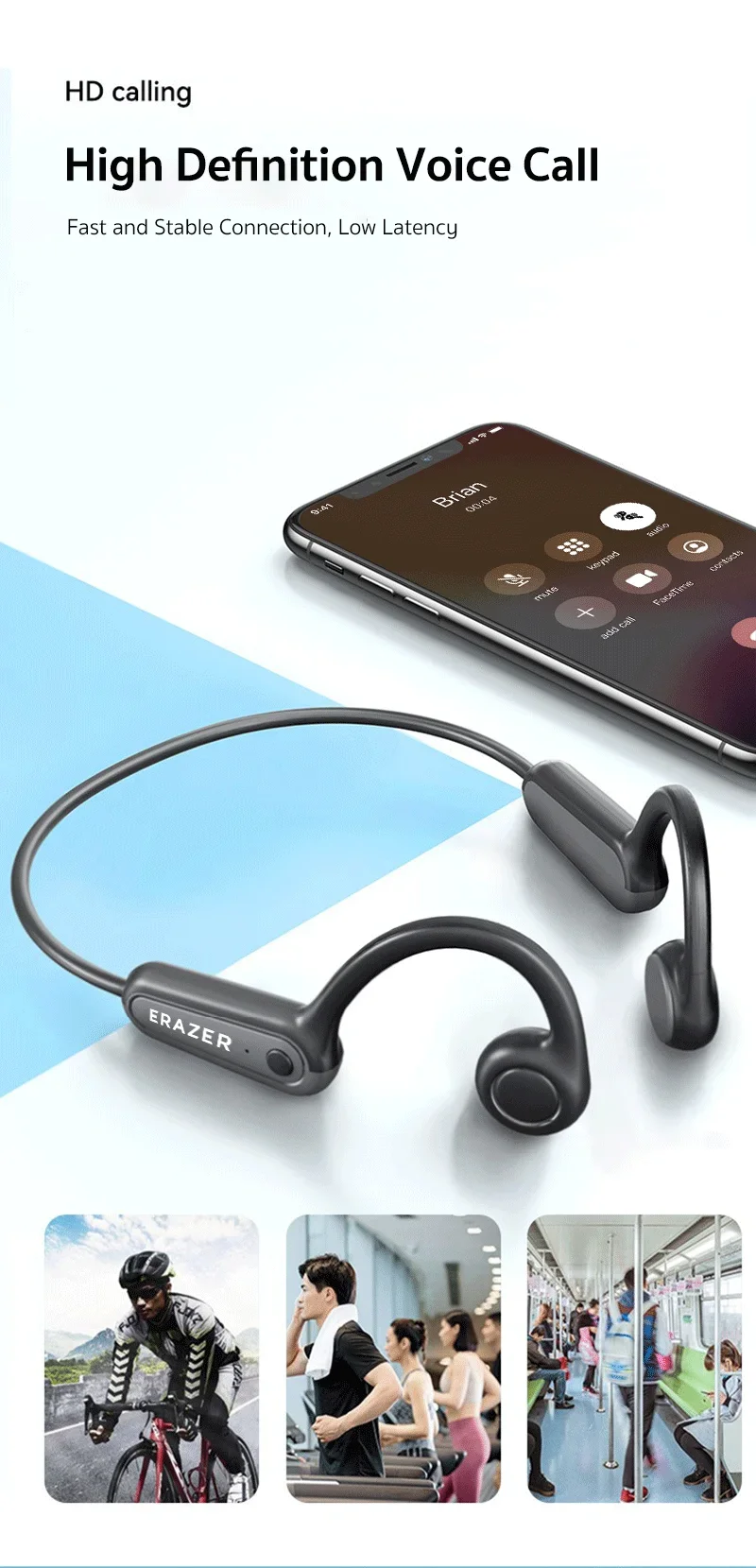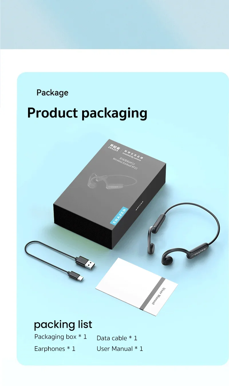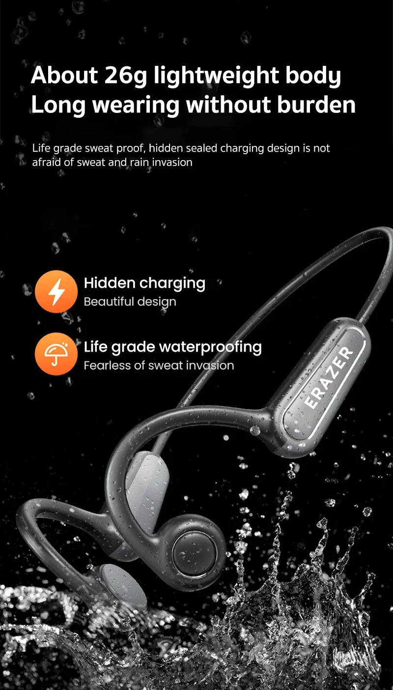 - > Fones de Ouvido Original Erazer XF22 OWS Bluetooth 5.4, À Prova D'Água, Controle por Toque, Headset Esportivo com Bateria de Longa Duração