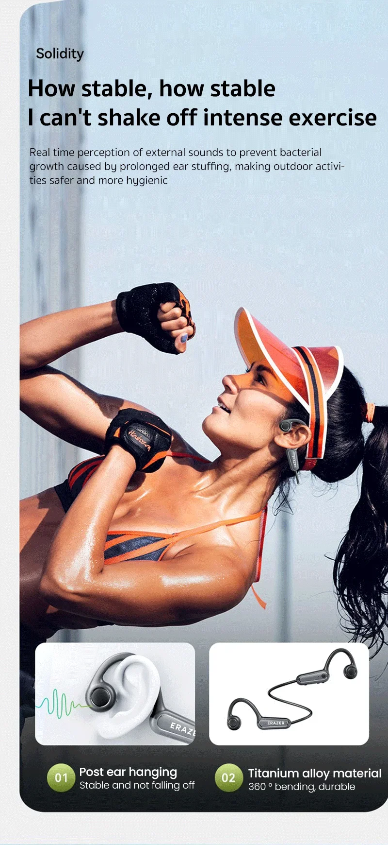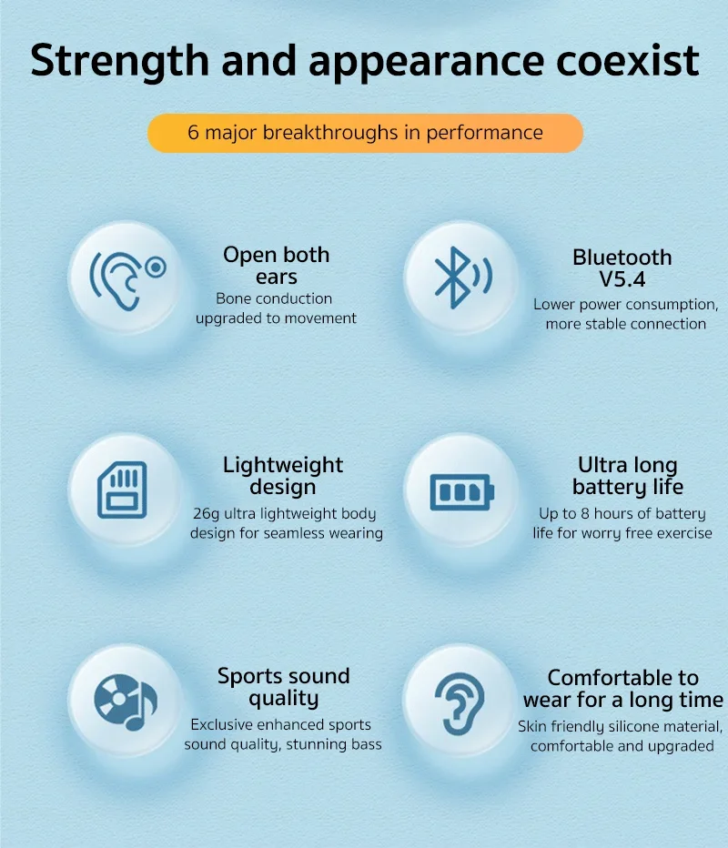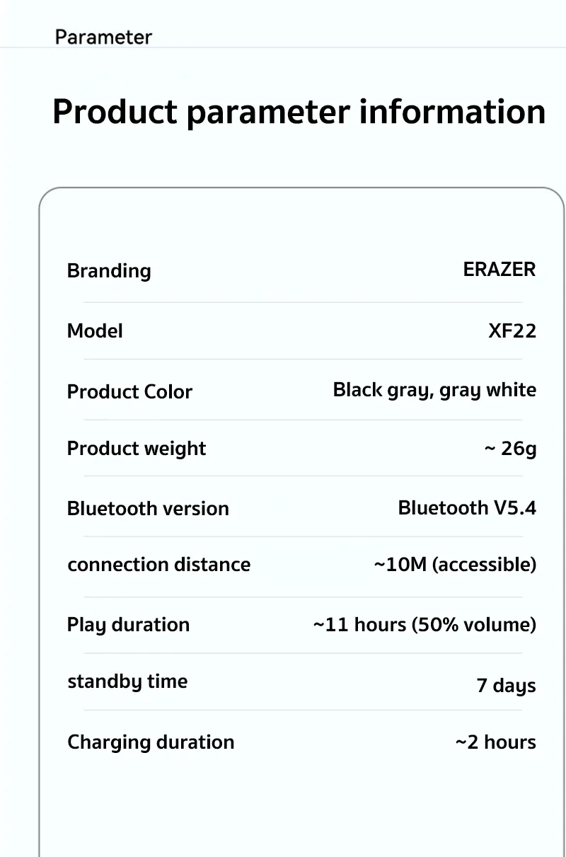 - > Fones de Ouvido Original Erazer XF22 OWS Bluetooth 5.4, À Prova D'Água, Controle por Toque, Headset Esportivo com Bateria de Longa Duração