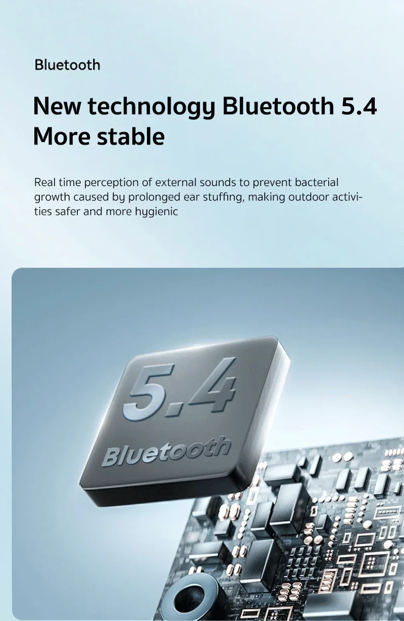5. chip bluetooth 5.4, hd de baixa latência, 65ms sem atraso, bom jogo, redução de ruído físico.