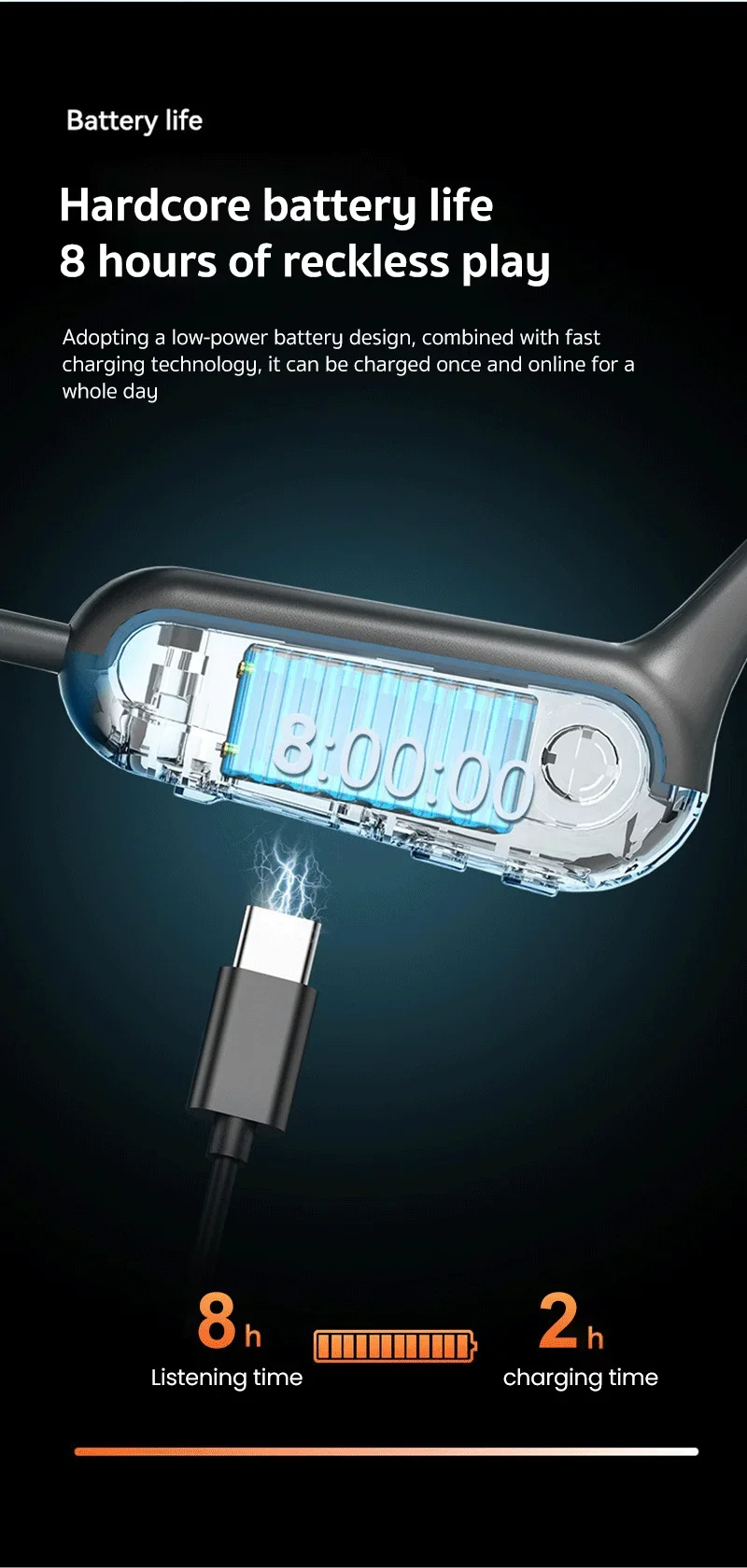 4. possui driver de energia durável de 13 mm, pode realizar interface estéreo e tipo C, carregamento rápido