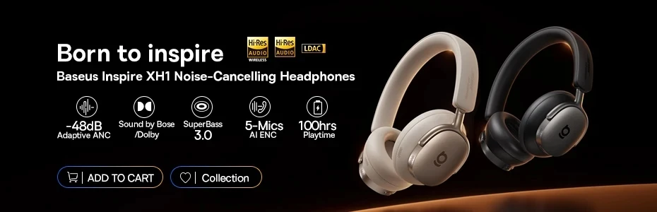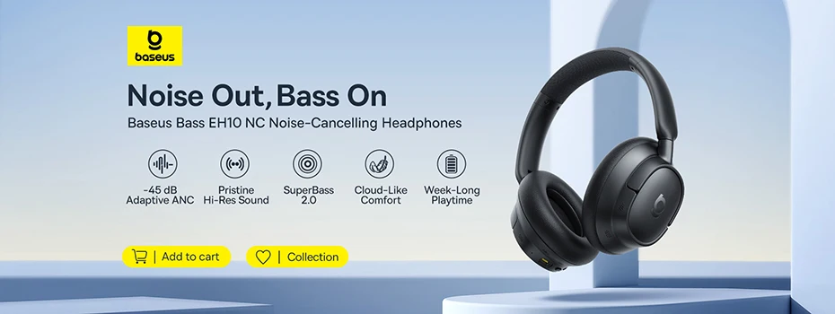 - > Fones de Ouvido Sem Fio Baseus Bass BH1 NC Lite ANC com Cancelamento de Ruído de 95% Bluetooth 6.0 80H Over Ear