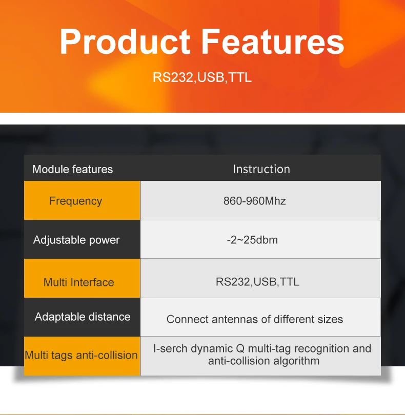 Frequency: 865-868MHZ(EU Standard),902-928MHZ(US Standard)