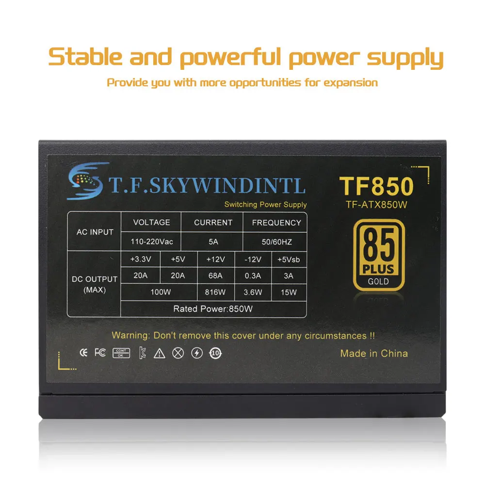 🚀Fonte de alimentação de 850w dourada não modular padrão atx fator de forma conector de CPU duplo de 24 pinos para PC de jogos de mesa