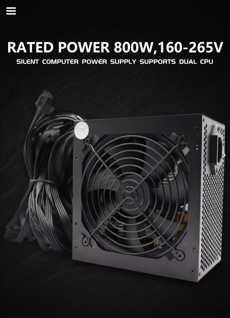 - > Fonte de alimentação atx de 800w para computador, silenciosa e eficiente para jogos, pc, construir 110v 220v, jogador competitivo, 80plus, 110v, 220v