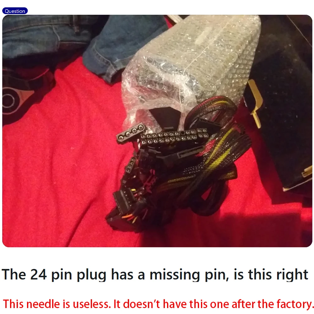 Fotos da aparência da fonte de alimentação e dos pinos do conector (para verificar danos no transporte).