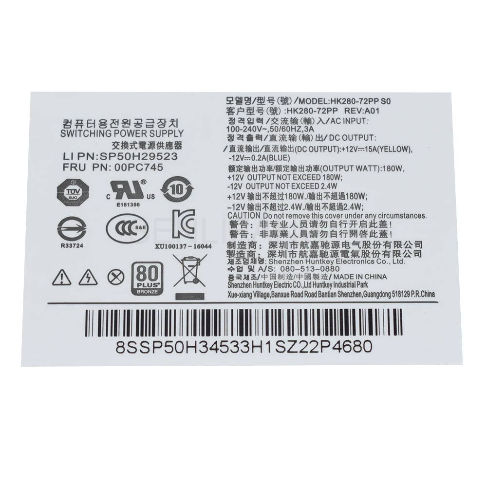 Para Lenovo 10Pin 180W Fonte De Alimentação PCE025 PCE010 PCG010 HK280-72PP FSP180-20TGBAB PA-2181-2 PA-2221-3V 00PC745 Novo