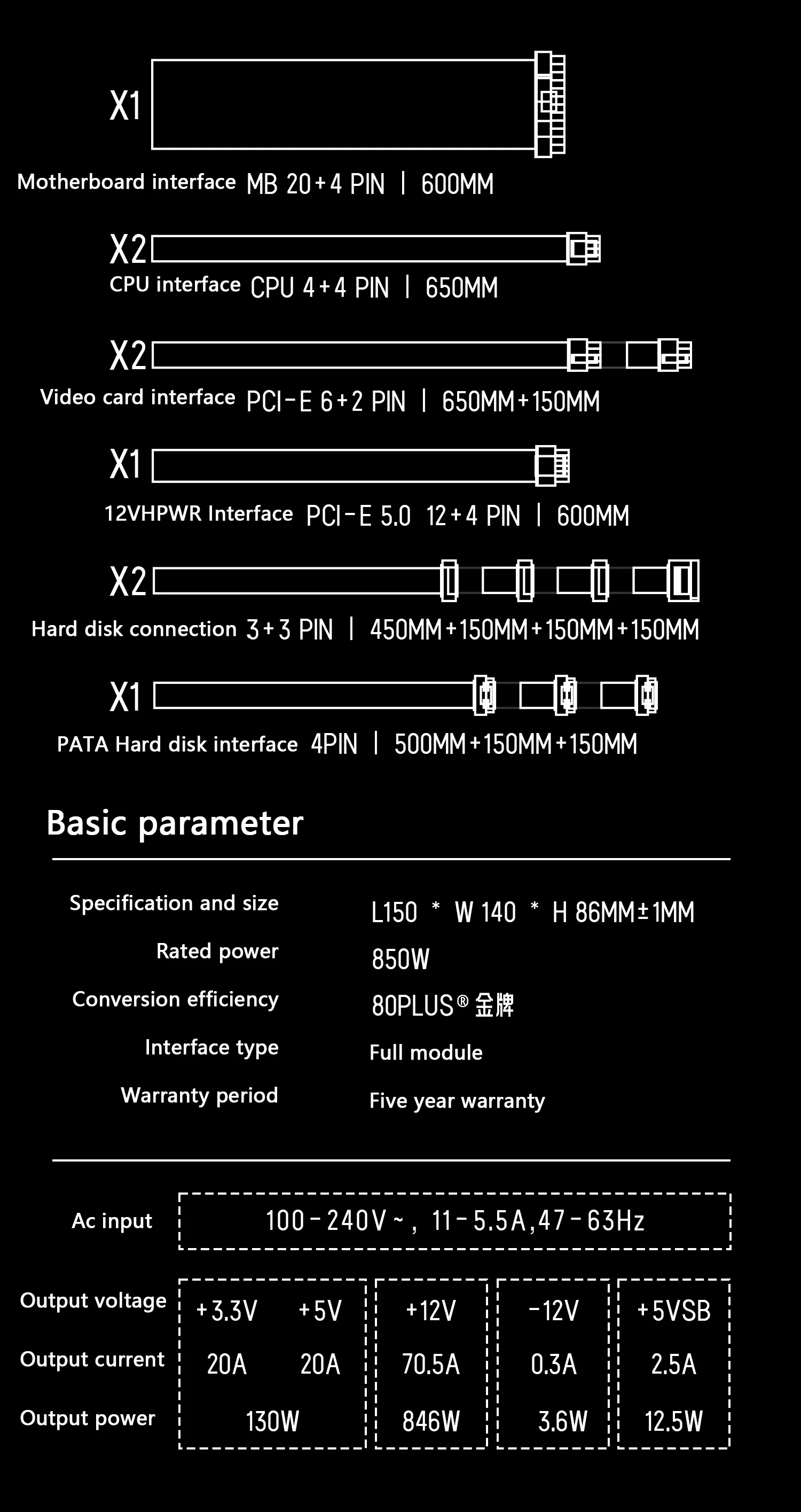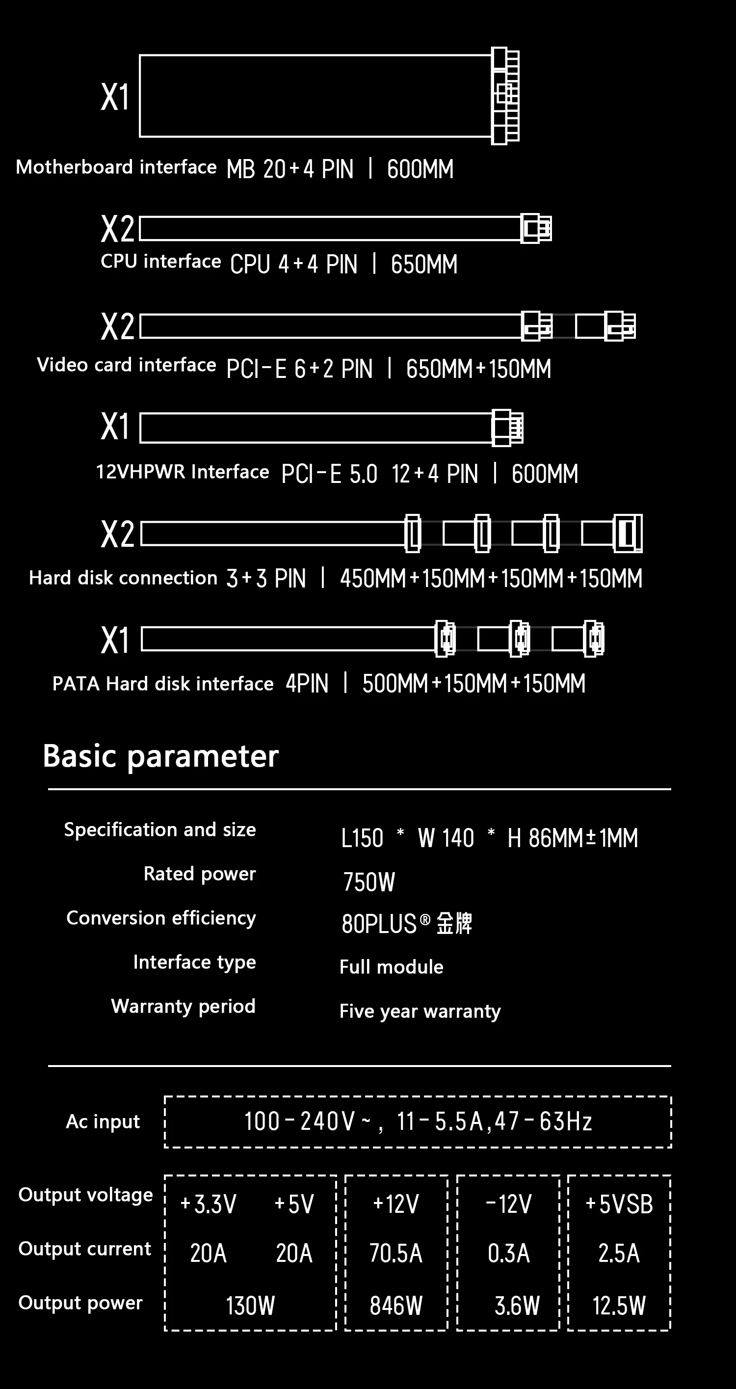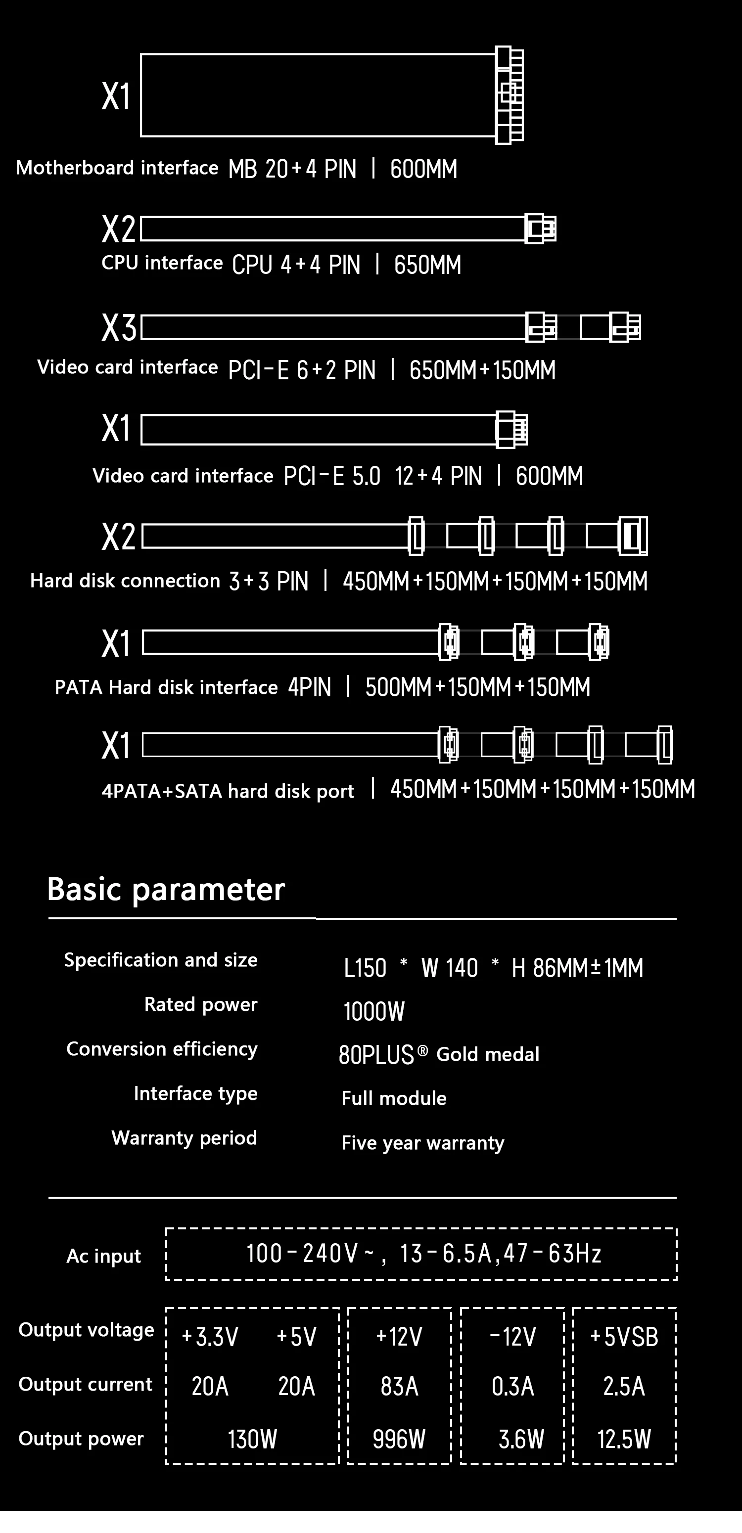 - > Fonte de Alimentação Thermalright, 650W, 750W, 850W, 1000W, 1200W, TG650, TG750, TG850, TG1000, TG1200, Medalha de Ouro, Fonte de Alimentação de Modo Completo