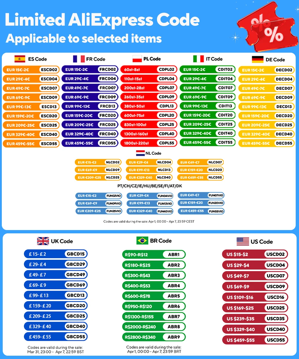 O preço do pedido inclui apenas o preço do produto e o custo de envio, e não inclui quaisquer taxas alfandegárias. Se você escolher entrega expressa comercial (DHL, UPS, etc.), o preço não inclui taxas de área remota e taxas de entrega secundária causadas por motivos do comprador. Devido às diferenças de desembaraço aduaneiro entre os diferentes países, não podemos garantir o prazo de entrega para todas as mercadorias internacionais. O prazo de entrega estimado é fornecido pelo AliExpress, não por nós. Observe que o comprador é responsável por todas as tarifas adicionais, taxas de corretagem e impostos importados para o seu país. Essas taxas adicionais podem ser cobradas no momento da entrega. Para mercadorias recusadas, não reembolsaremos a taxa de envio.