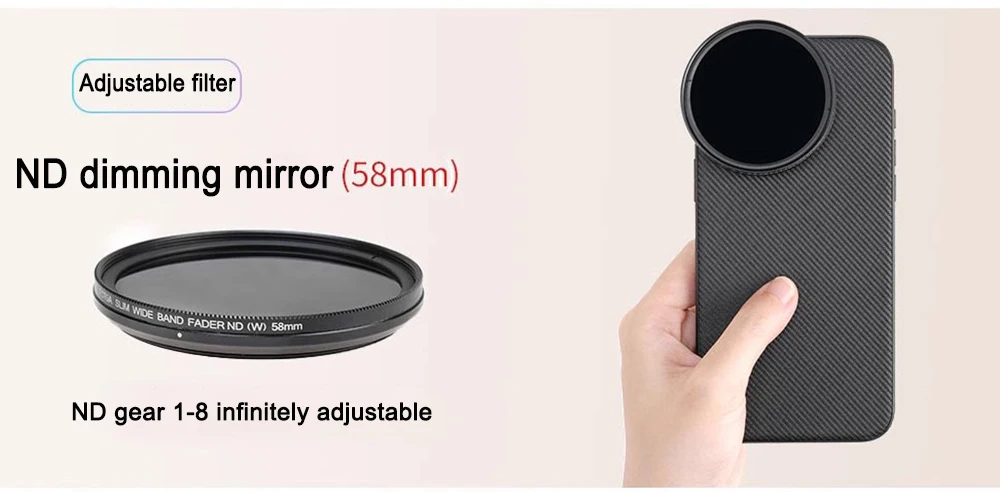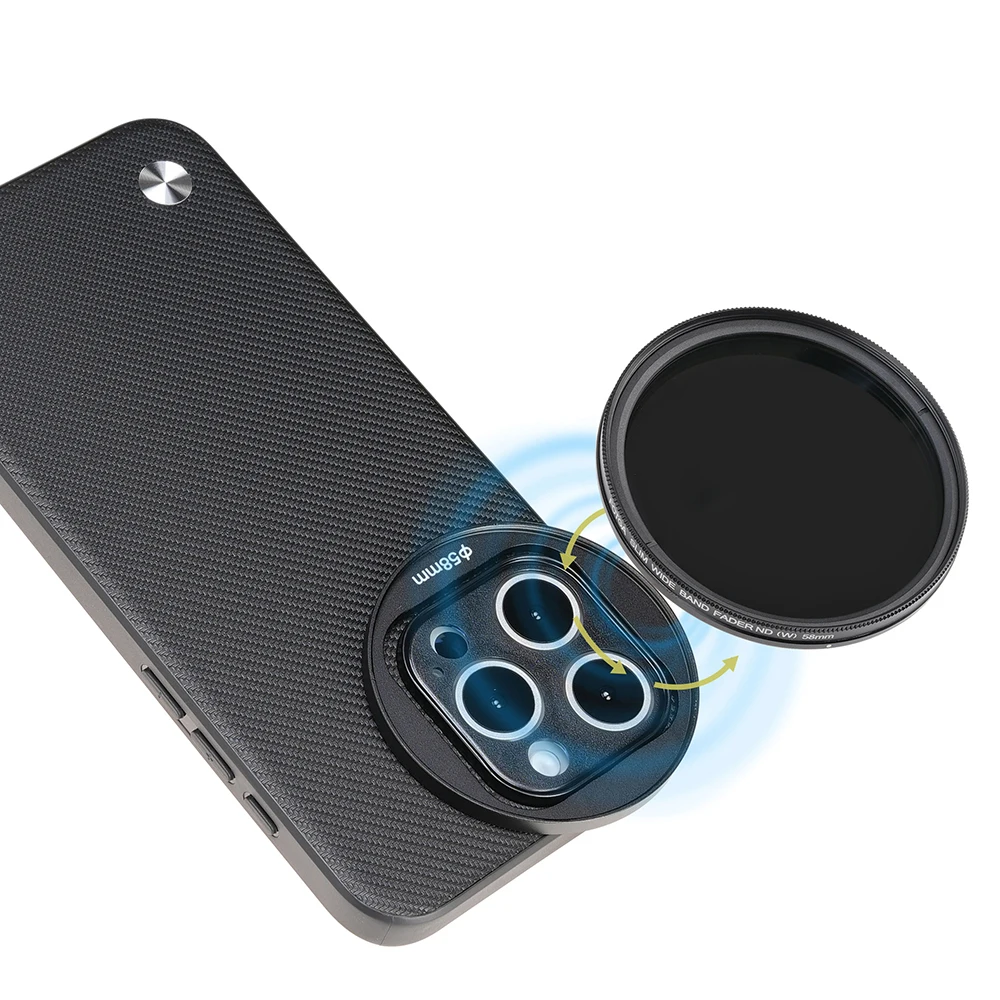 Adaptador de filtro de 58 mm de liberação rápida - Encaixe o adaptador de filtro de 58 mm na capa do telefone e monte qualquer filtro de 58 mm, incluindo ND, CPL, difusão preta, poluentes leves 8on e filtros de cores gradientes, para fotos artísticas, cinematográficas e expressivas.O adaptador de filtro de liberação rápida pode ser conectado e removido em um segundo