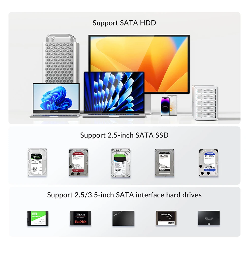 Fast Shipping: Type C Daisy Chain 330TB SATA HDD SSD Case