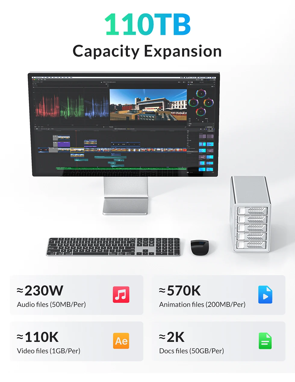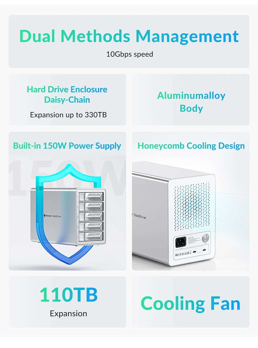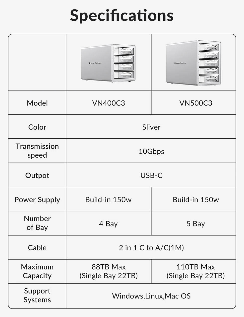 Maximum Capacity: 110TB Max (Single Bay22TB)