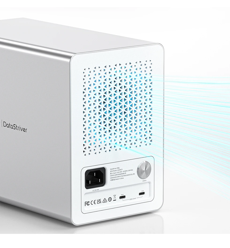 Orifícios de resfriamento em favo de mel com ventilador silencioso para potência de resfriamento adicional, o ventilador ajusta sua velocidade automaticamente com base na temperatura do disco rígido.