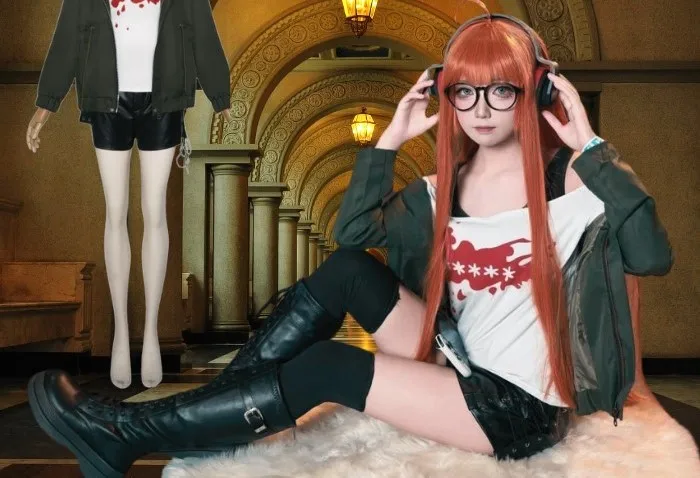 Futaba sakura cosplay traje peruca feminina halloween conjunto completo uniforme terno casual casaco camisa óculos fones anime cosplay