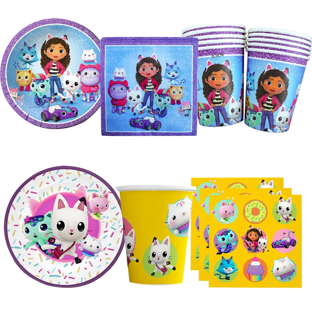 Gabby Doll's House Party Suprimentos para Crianças, Louça, Prato de Papel, Balão, Toalha de Mesa para Meninos, Decorações de Festa de Aniversário