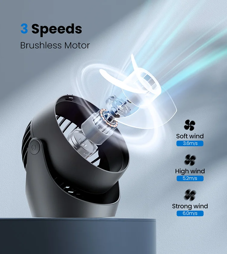 - > Gaiatop-Quiet Desktop ventilador circulador de ar para quarto, fluxo de ar forte, inclinação ajustável 360 °, sala inteira, 3 velocidades