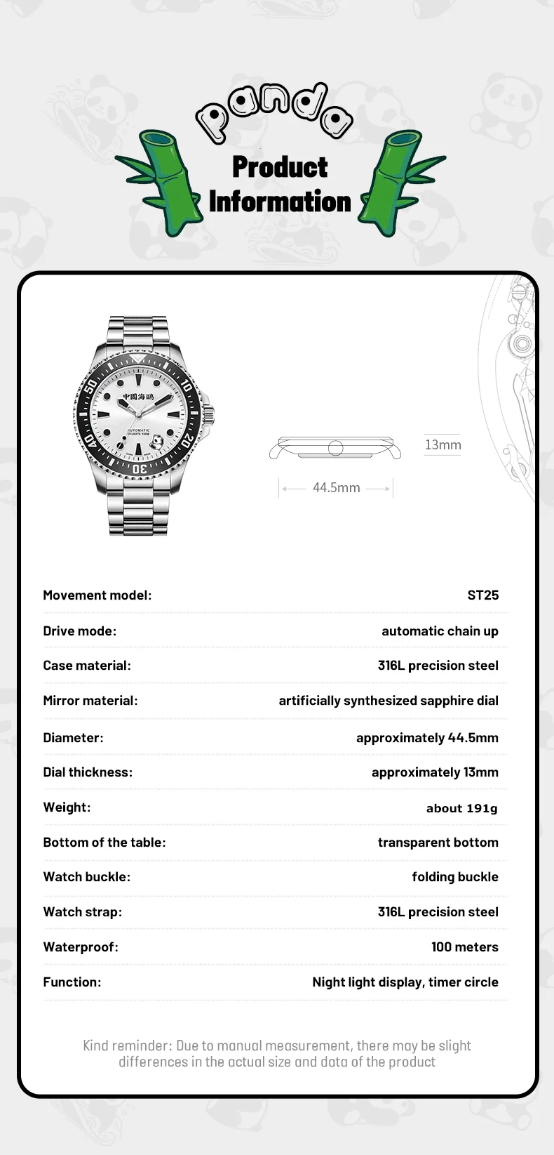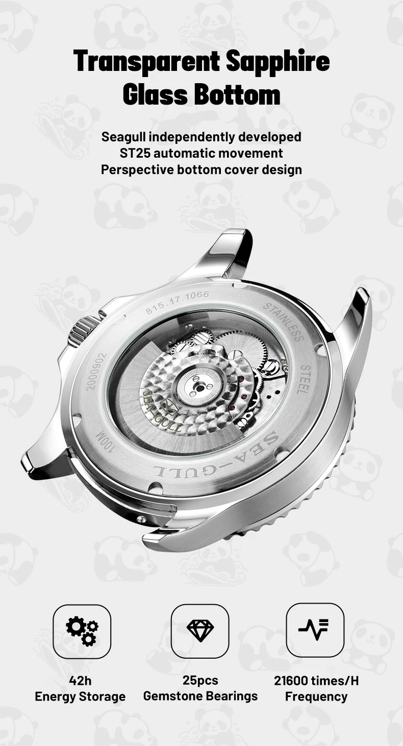 - > Gaivota 2025 novo panda de rolamento 200m relógios de mergulho à prova dwaterproof água para homens relógio mecânico automático relógio masculino luxo st2500 6203