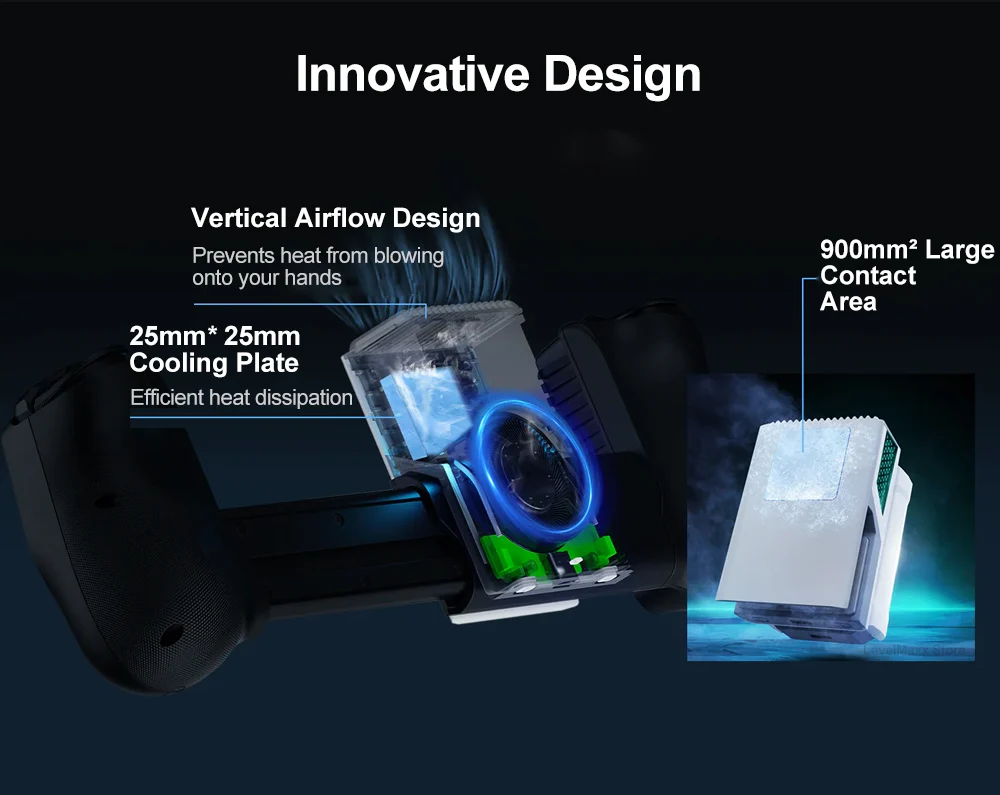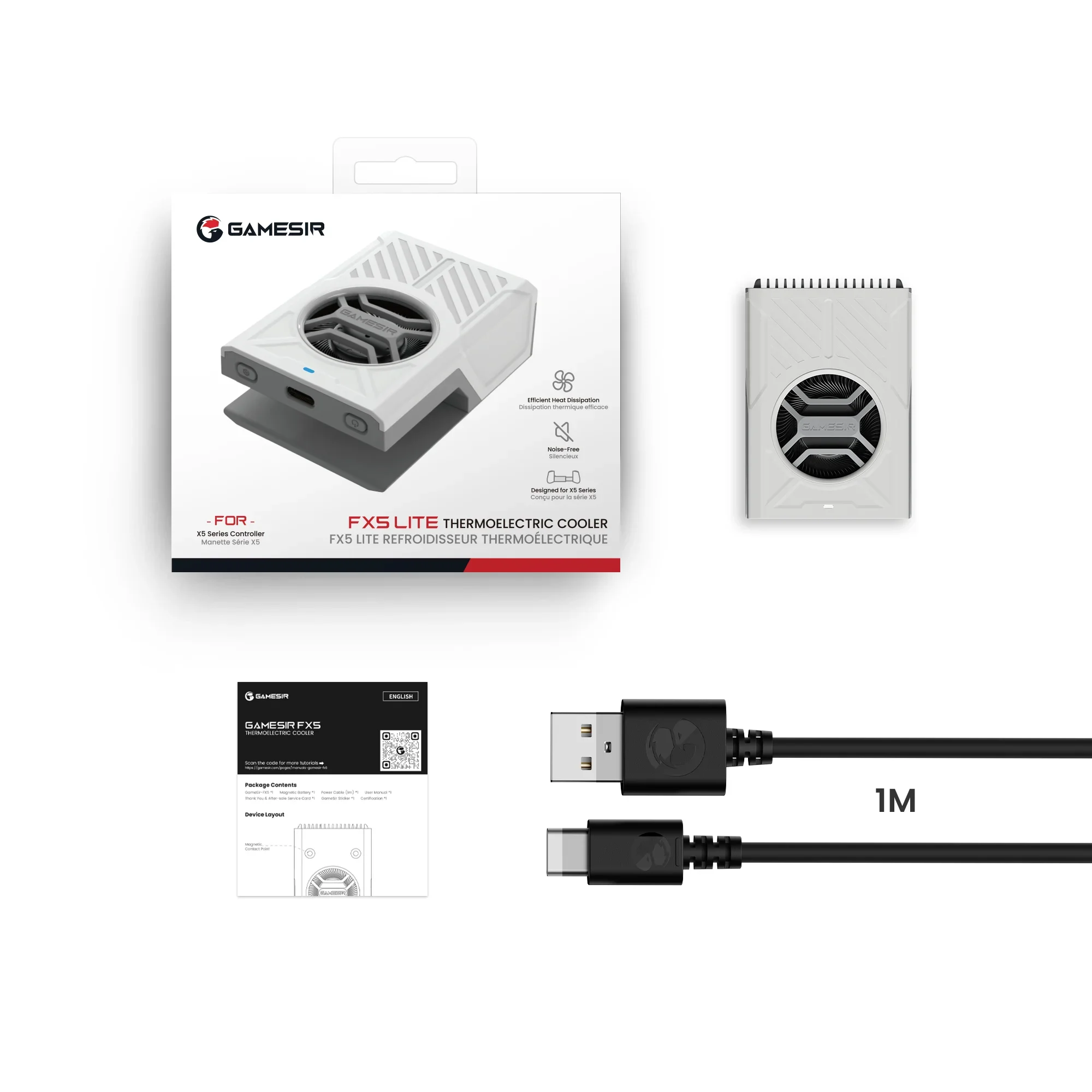 O refrigerador termoelétrico GameSir FX5 Lite, projetado especificamente para controladores da série GameSir X5, foi desenvolvido para manter suas sessões de jogo frescas e confortáveis.Projetado para máxima dissipação de calor, o FX5 Lite está equipado com uma placa de resfriamento de 25 mm x 25 mm e uma grande área de contato de 900 mm2, garantindo desempenho de resfriamento ideal durante jogos intensos.