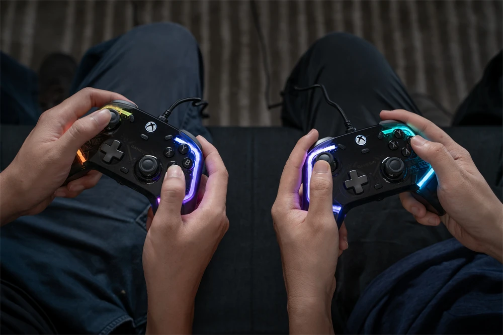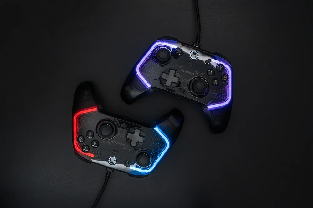 GameSir Kaleid, um controlador iluminado autorizado por Xbox, possui sticks Hall Effect e gatilhos analógicos para maior durabilidade e capacidade de resposta precisa.Com um corpo transparente e duas faixas de luz LED personalizáveis, o Kaleid permite que os jogadores tenham uma olhada de perto sobre efeitos de luz impressionantes que correm ao longo da placa de circuito impresso (PCB).Mergulhe em uma experiência de jogo personalizada com o efeito de luz personalizado.