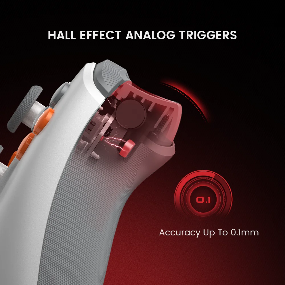 Com gatilhos de efeito Hall ajustados com precisão para um puxão consistente e suave, prepare-se para correr com confiança e desfrute de uma experiência de jogo perfeita como nunca antes.
