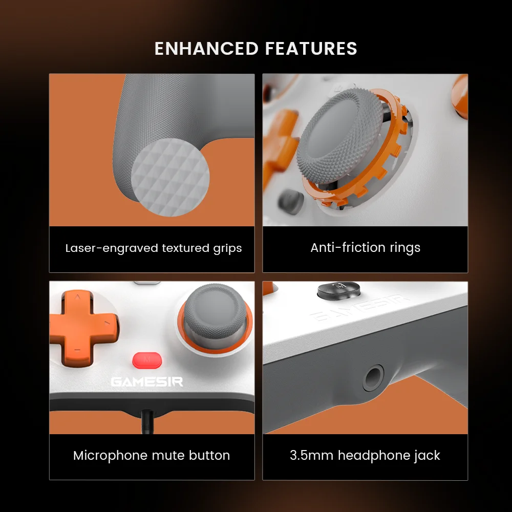 Usando GameSir™tecnologia de efeito Hall magnético sem contato para garantir que os bastões nunca se desgastem durante sua vida útil e fornecer uma vida útil ultra de até 5 milhões de ciclos, o GameSir T7 evita a deriva do stick e garante desempenho confiável e durável do stick para jogos em Xbox, PC e Steam.