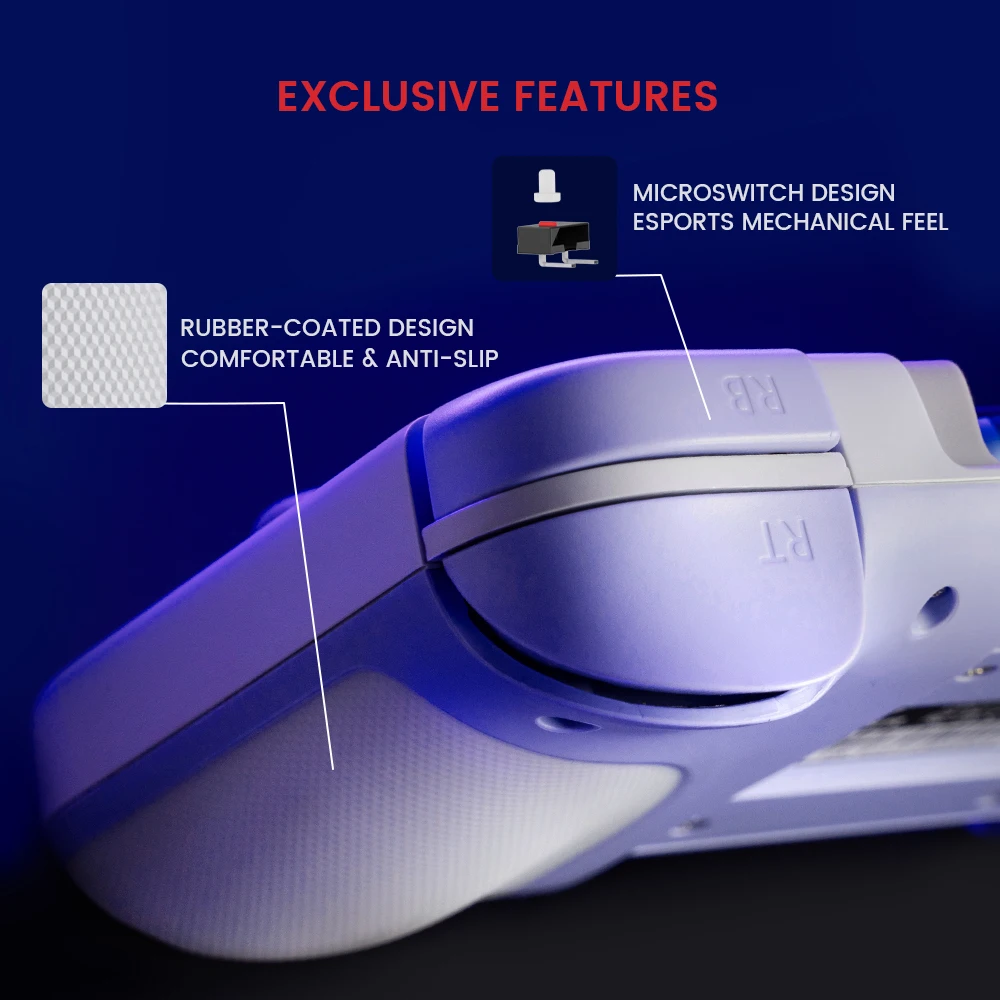 O X2s Type-C permite que você ative facilmente a função Turbo, proporcionando disparos mais rápidos e sem latência. Você pode pressionar os botões Capture + A/B/X/Y/LB/RB/LT/RT para configurar a função. Os botões LB e RB apresentam um design de microinterruptor, oferecendo uma sensação mecânica de e-sports. Eles também suportam a função Turbo, permitindo disparos ainda mais rápidos e sem latência. Com uma durabilidade de até 3 milhões de cliques, esses botões vão liberar seus dedos e não deixar espaço para os inimigos escaparem.
