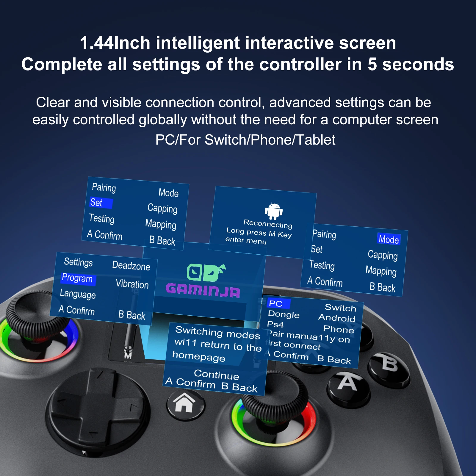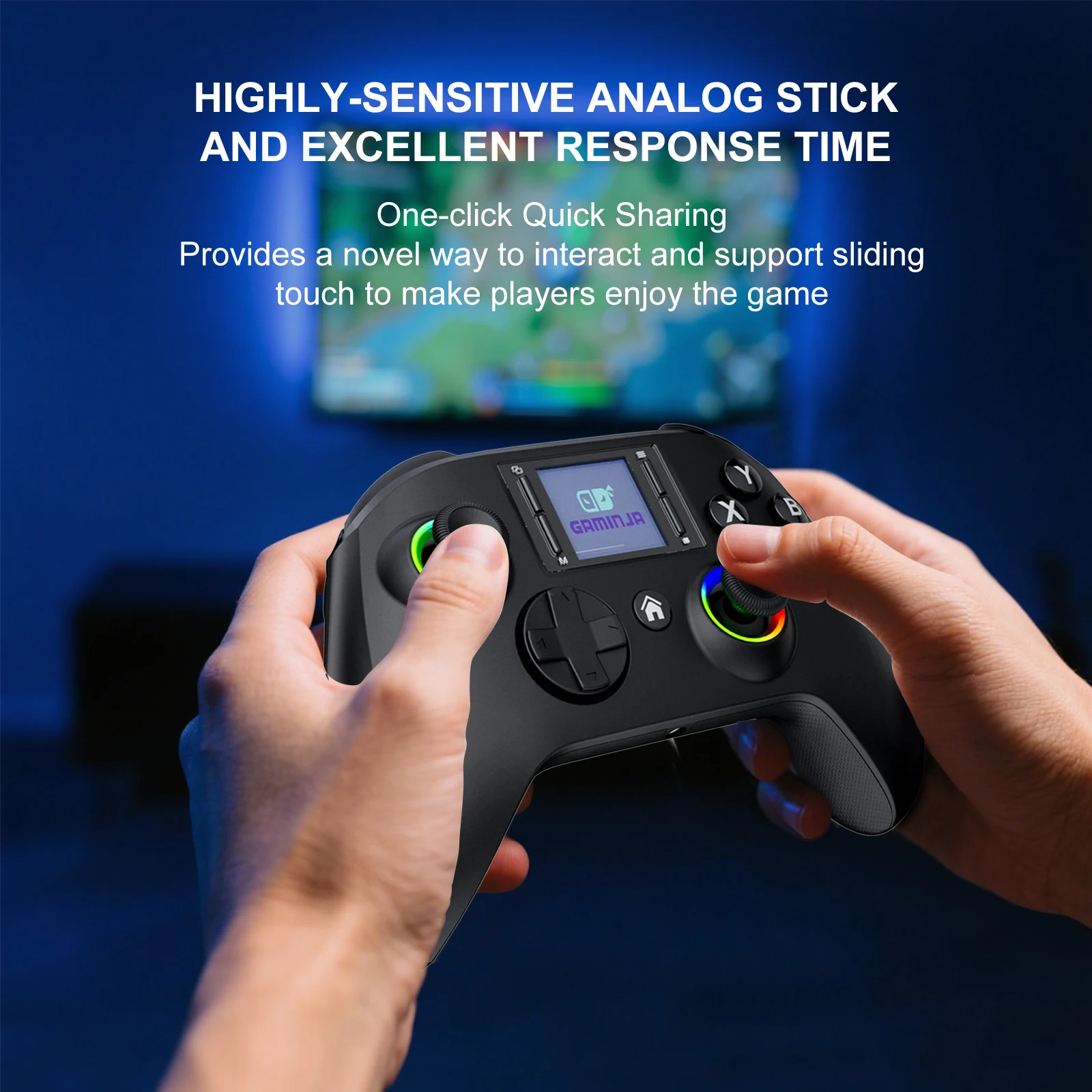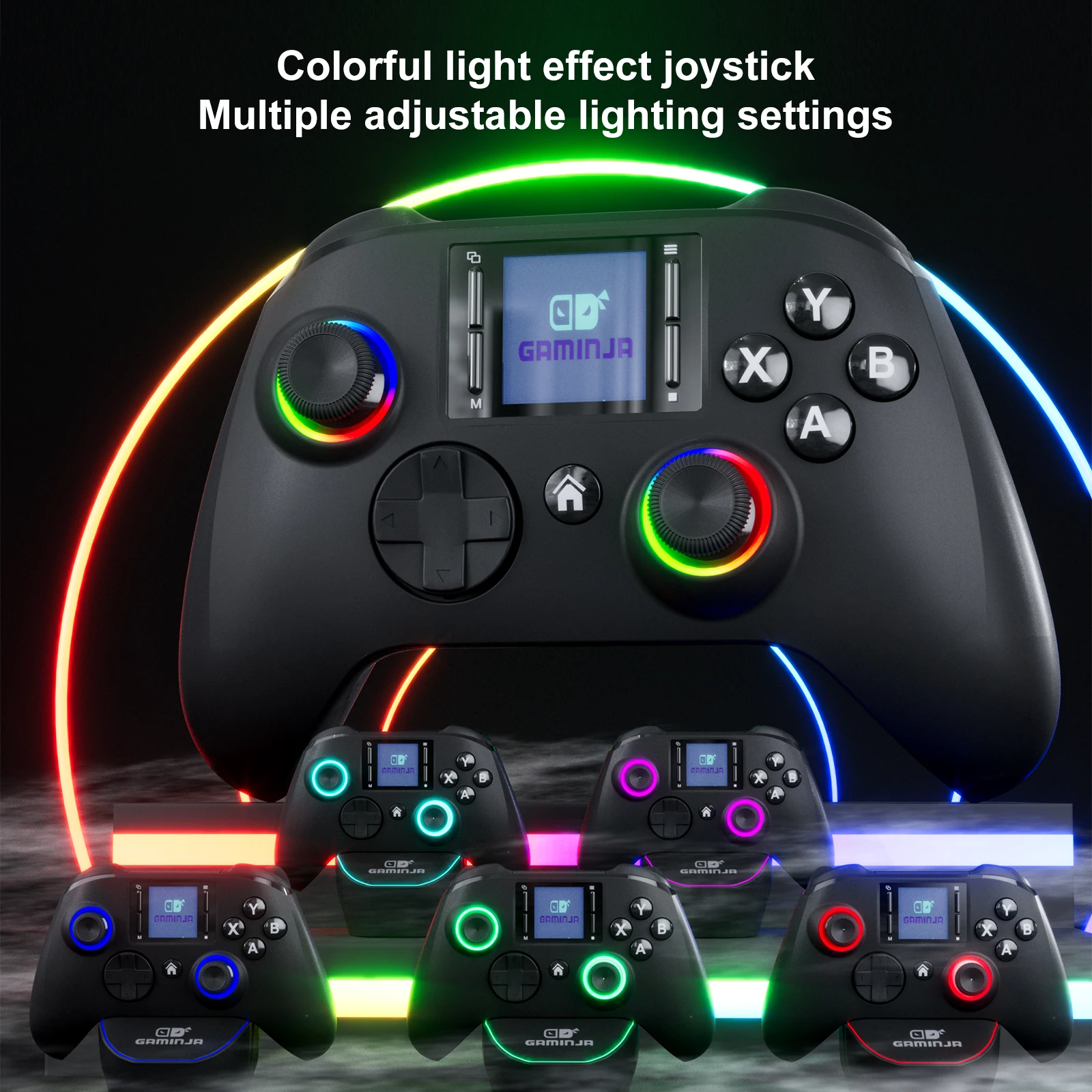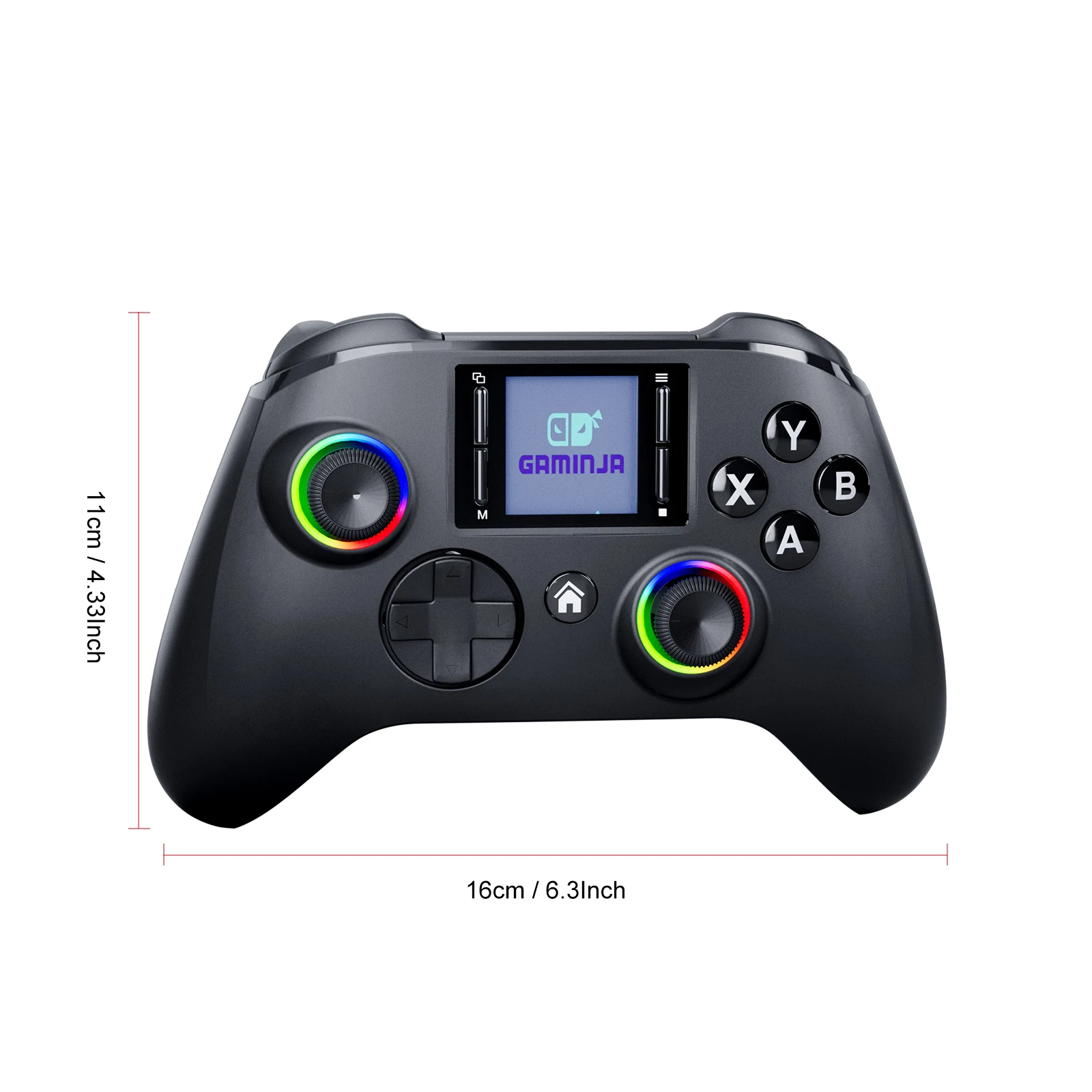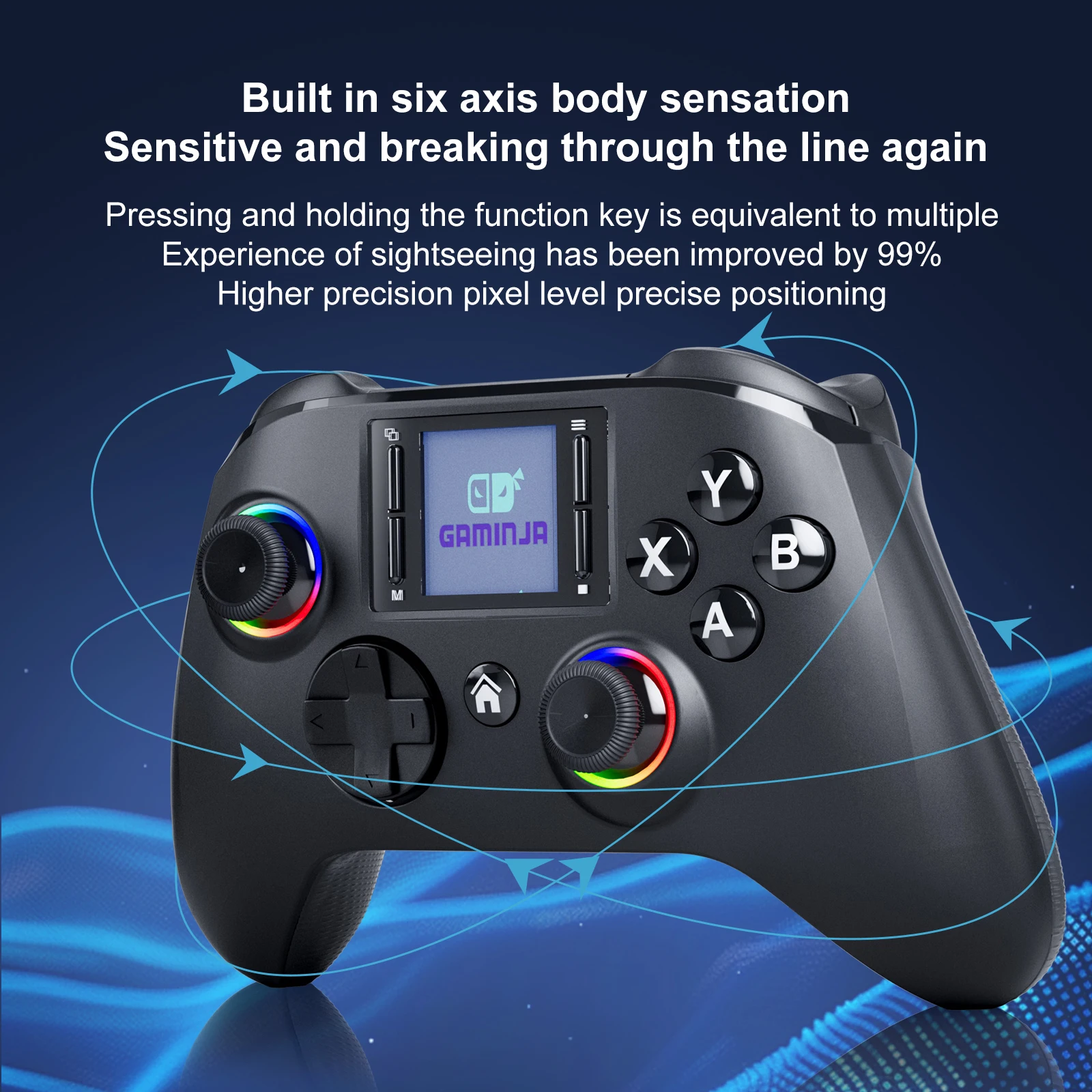 GAMINJA 6162 Tela Inteligente de 1,44 polegadas Controlador Sem Fio Para Switch P4 iOS Android PC TV Dual Hall Joystick Calibração Luz RGB