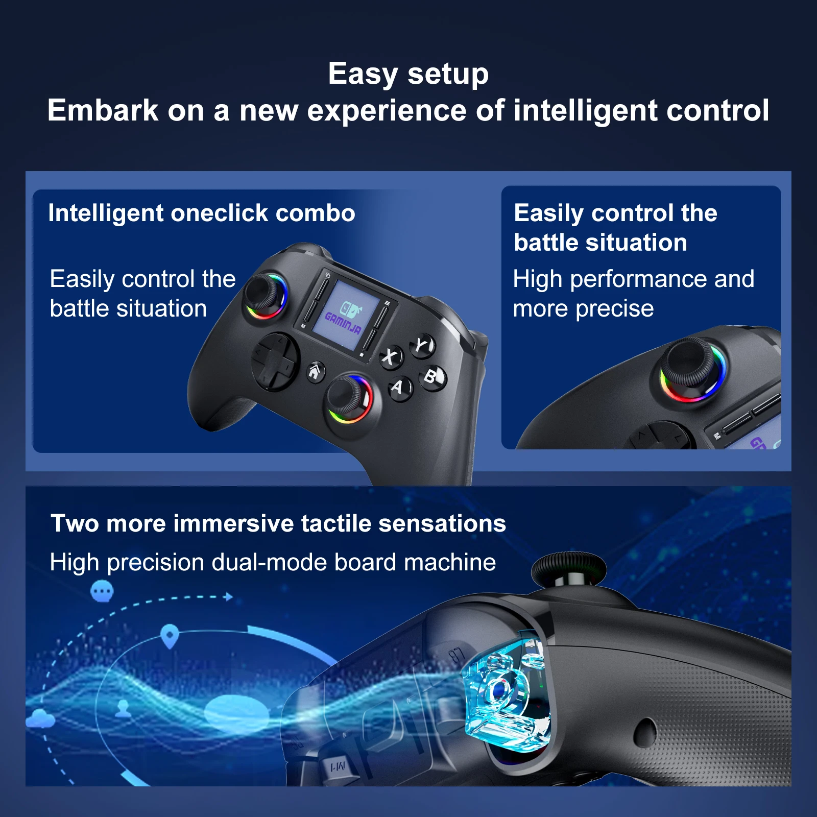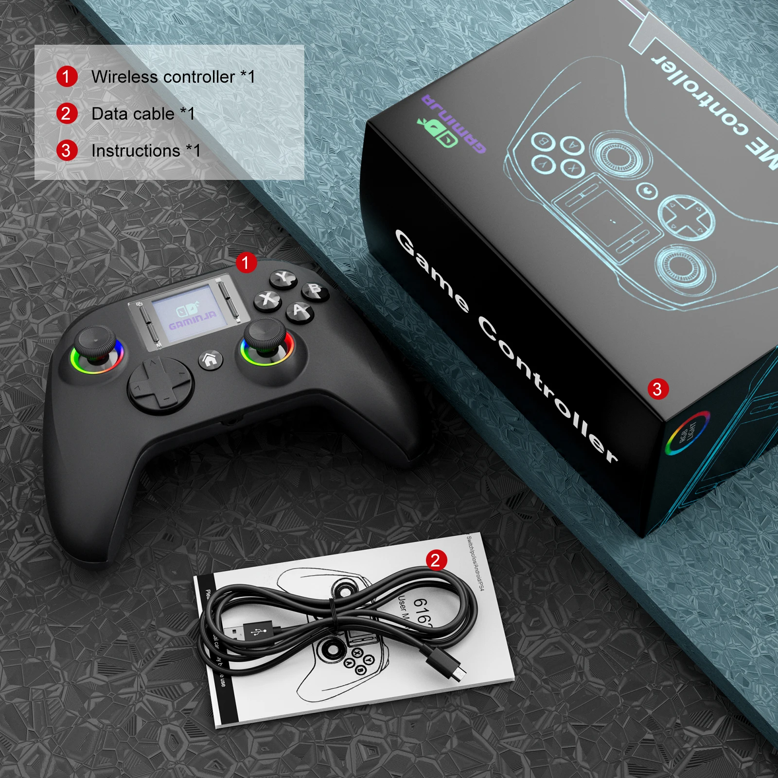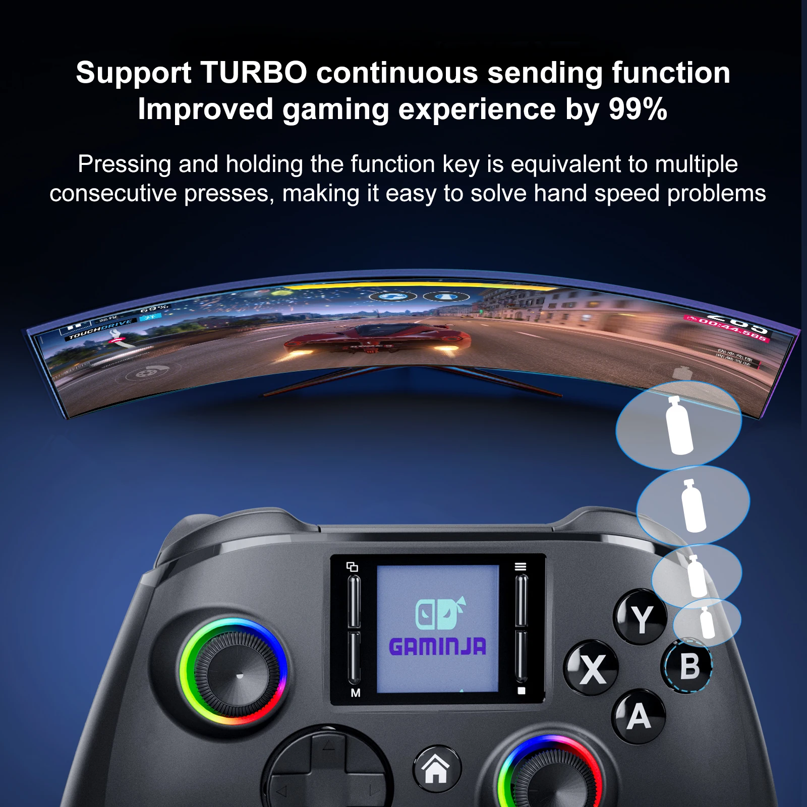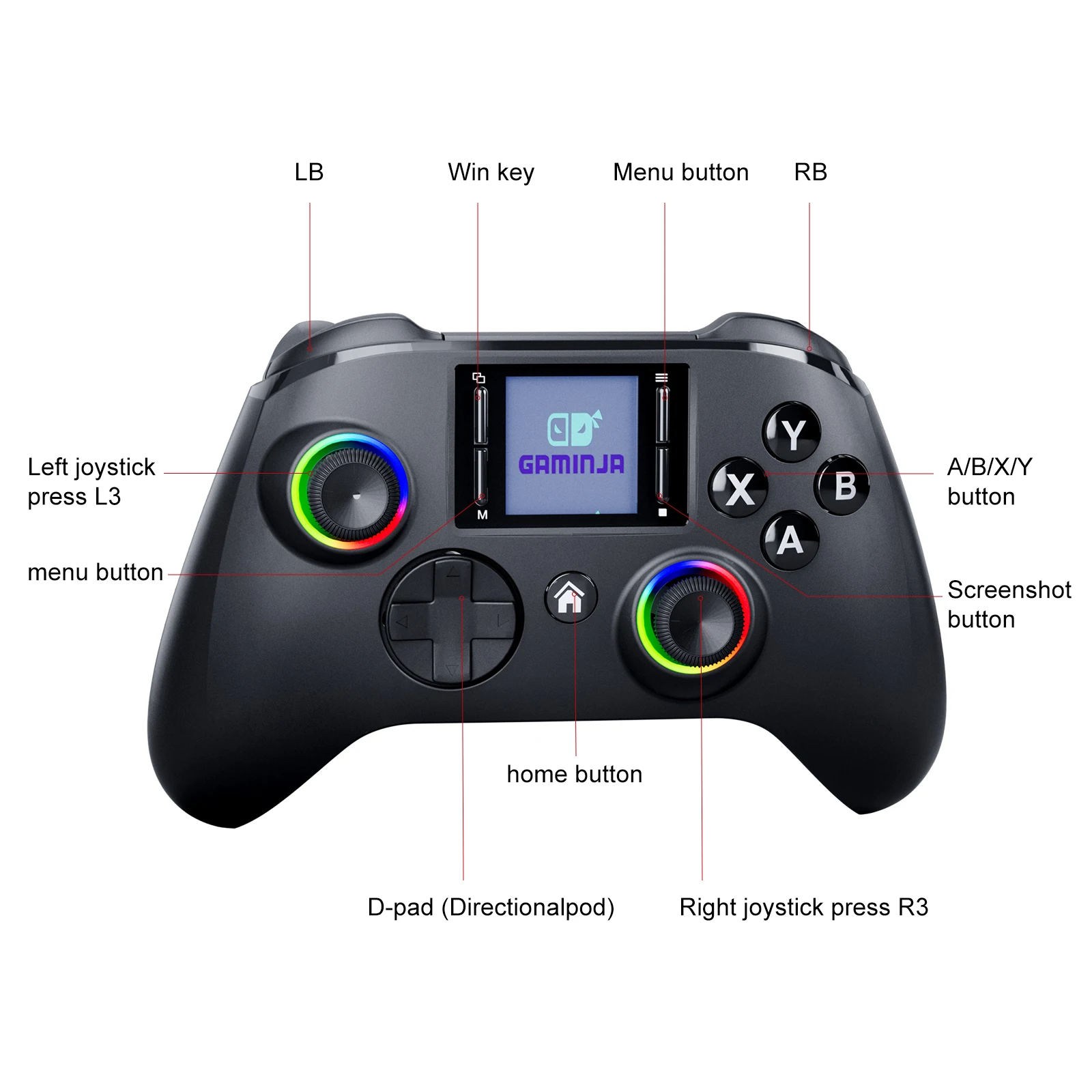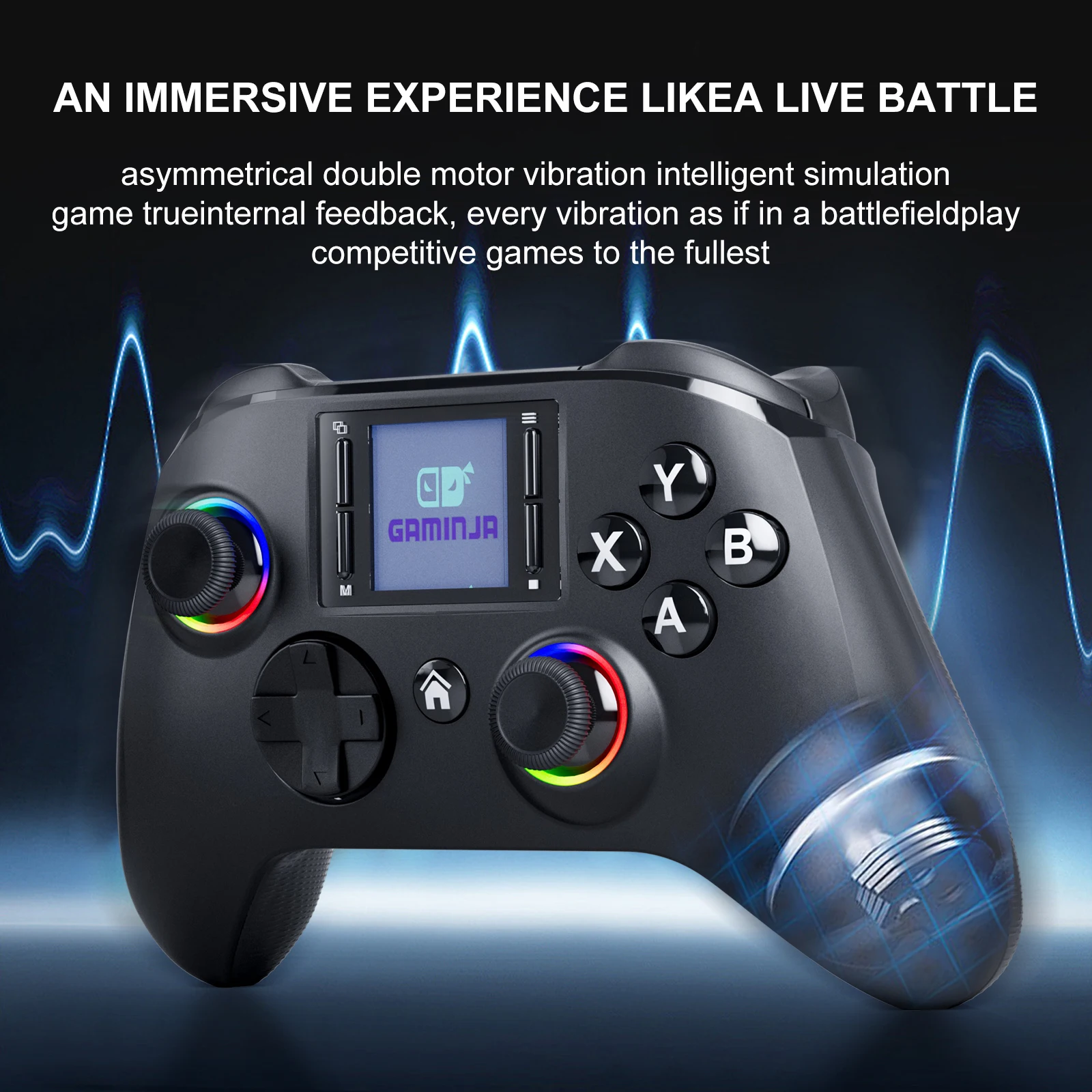 GAMINJA 6162 Tela Inteligente de 1,44 polegadas Controlador Sem Fio Para Switch P4 iOS Android PC TV Dual Hall Joystick Calibração Luz RGB