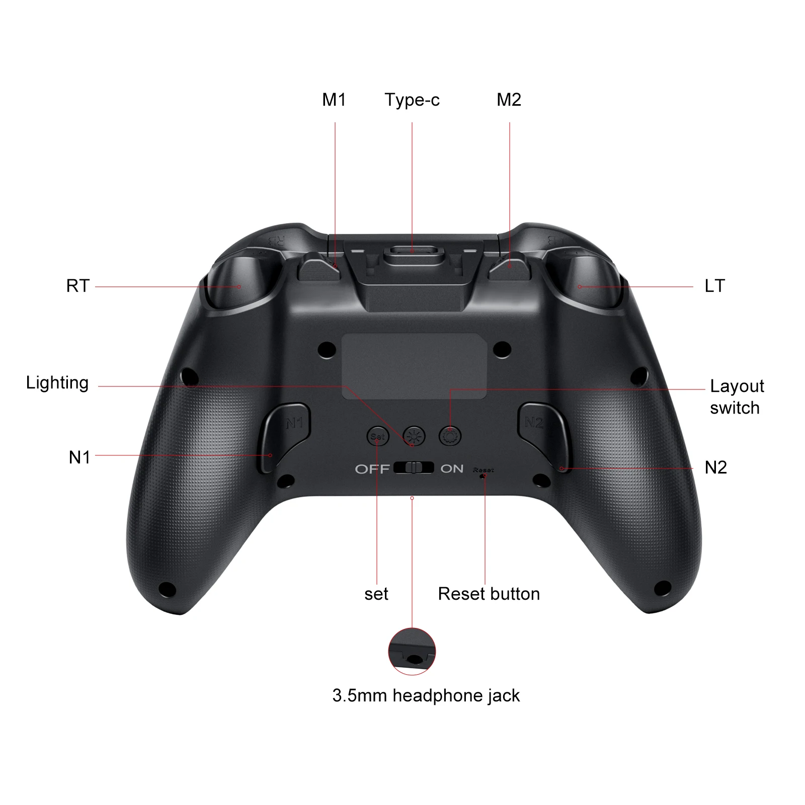 1) Compatível com múltiplas plataformas (PC/Switch/P4/Android/IOS/Android Tv/Car/Projetor), suportando 3 modos de conexão: Modo com fio/Modo Bluetooth/Modo sem fio 2.4G.