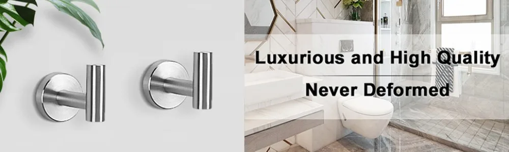 Sleek surfaces with no sharp edges, safely hang a bathrobe, bath towel, pants and shirt, swimsuits, coats, bags, shower caddy, or other stuff. It can perfectly suit your bathroom, bedroom, living room, kitchen, outdoor shower, basement, laundry room, and office.