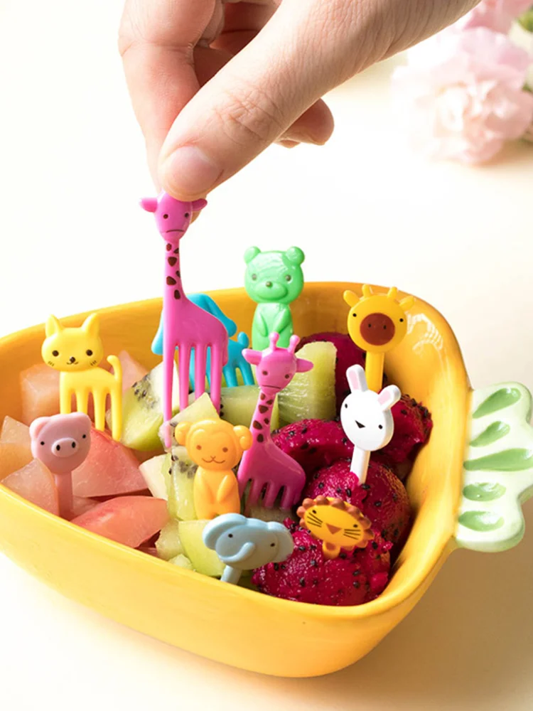 Garfo de frutas para fazenda de animais, mini desenho animado para crianças, lanche, bolo, sobremesa, palito de dente, pranchinhas bento, decoração de festa, cor aleatória, com 10 peças