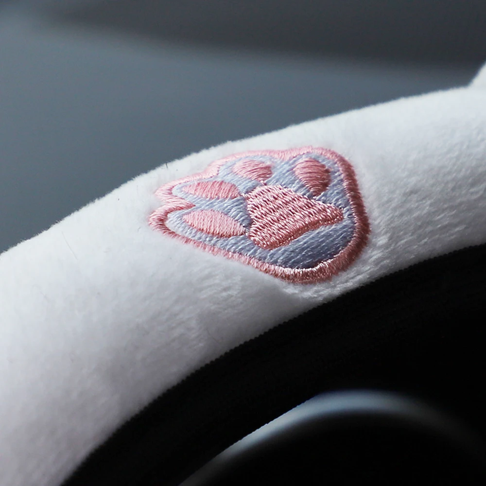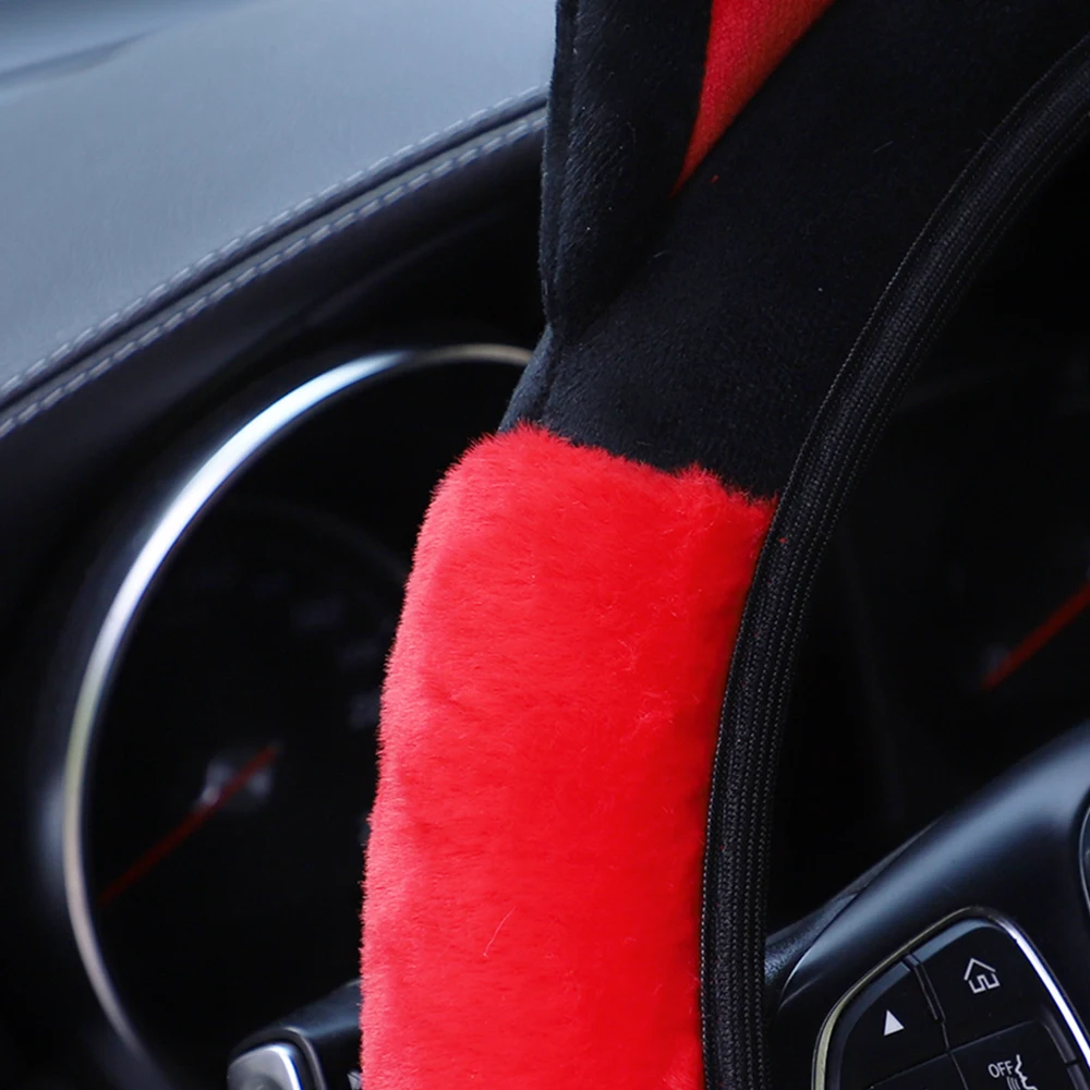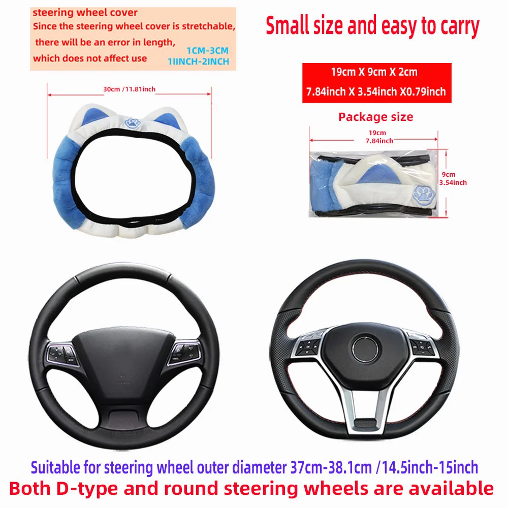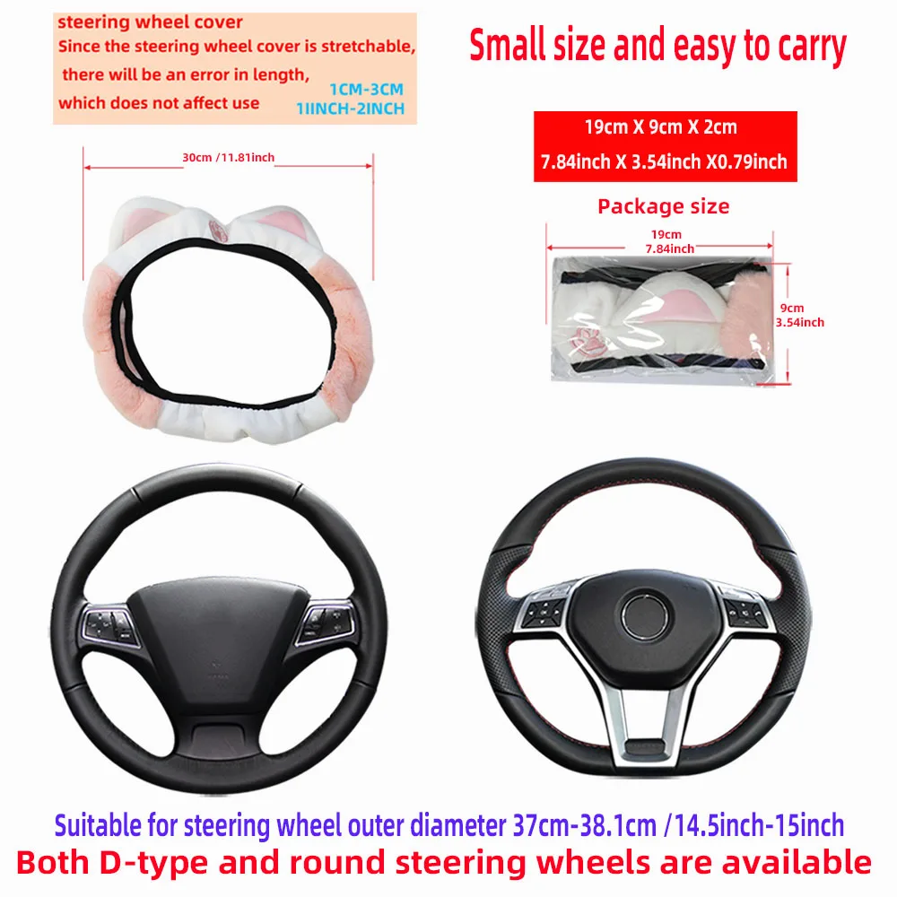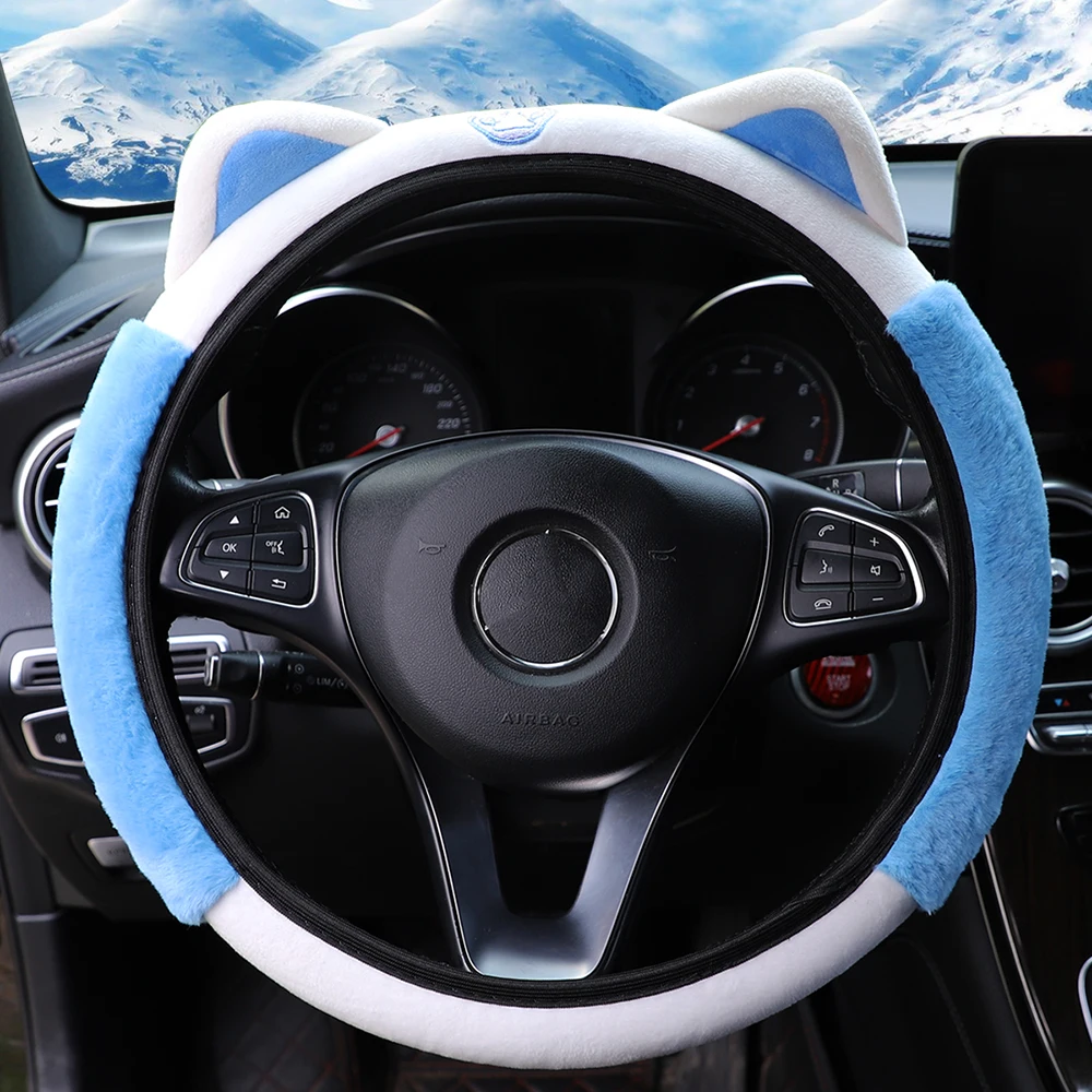 - > Gatinho de pelúcia fofo de desenho animado, carro quente sem anel interno, capa de volante, acessórios de carro adequados para 14,5-15 polegadas