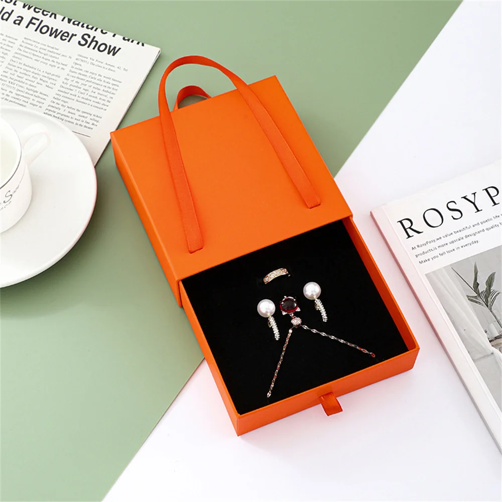 Paper Pull-Out Drawer Jewelry Box Handheld Jewelry Packaging Box.