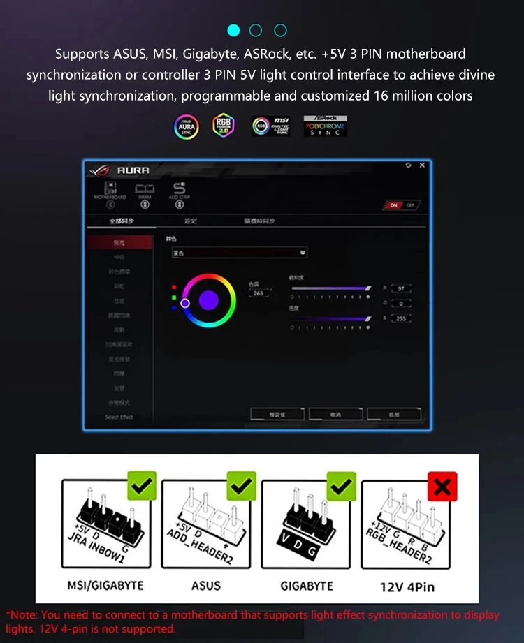 Cor do LED: ARGB