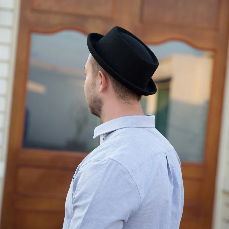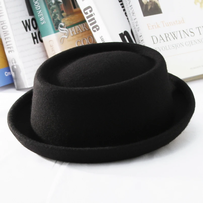 - > Gemvie clássico 100% lã de feltro macio chapéu de torta de porco fedora para homens mulheres outono inverno chapéu de lã aba curvada chapéus de vestido masculino