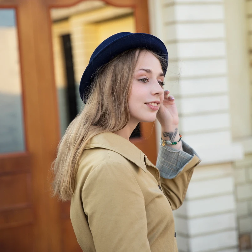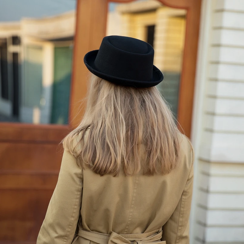 Clássico lã porco torta chapéu, arregaçar brim chapéu de lã trilby, confortável para todos os dias, um chapéu elegante e atemporal adequado tanto para homens e mulheres.