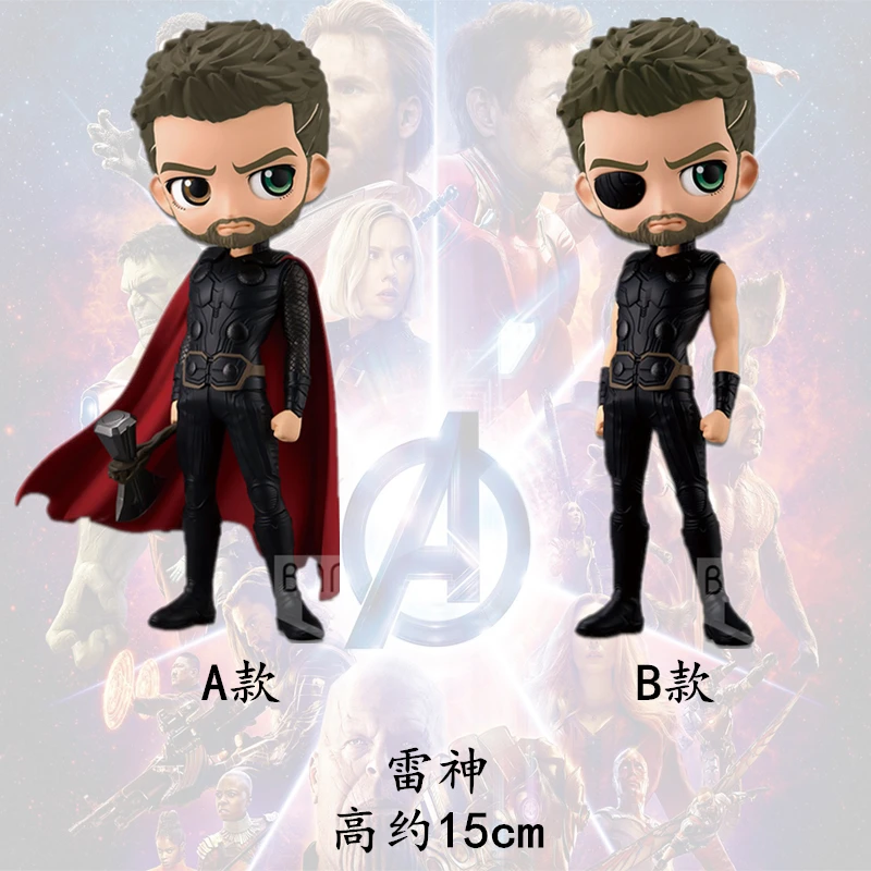 - > Genuíno bandai banpresto qposket marvel vingadores homem de ferro capitão américa loki thor figuras modelo coleção coletar ornamentos