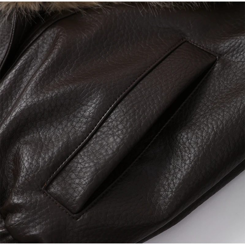 Construída para climas mais frios, a jaqueta oferece excelente resistência ao vento e isolamento. A gola de pele macia e a construção em couro resistente trabalham juntos para mantê-lo aquecido e protegido das intempéries, tornando-o uma escolha prática e elegante para a estação.