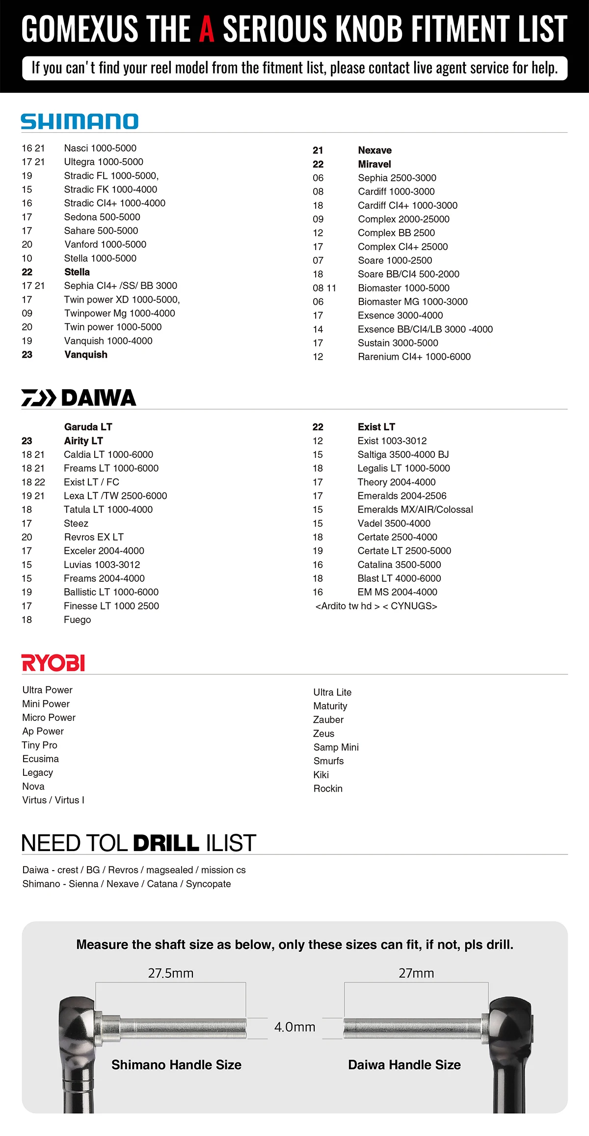 Para o botão liga / desliga de 20 mm, um carretel de pesca 1000 é mais adequado.Observação: os modelos compatíveis não se limitam à explicação acima.Então, se você tiver alguma dúvida, entre em contato conosco.